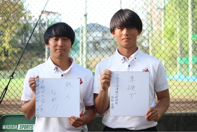 第3回に登場するのは、服部由偉選手 (スポ2=北海道・函館ラ・サール)、北原佑太郎選手(スポ2=神奈川・桐蔭学園)です。服部選手は硬式野球部、北原選手は軟式野球部に高校時代は所属していて、大学から準硬式野球部に入部しました。準硬式野球の面白いと思うところは?準硬式野球と硬式・軟式野球の違いとは?それぞれ違った背景を持つお二人が、入部を迷っている新入生に向けて、準硬式野球の魅力を語ってくださいました!
