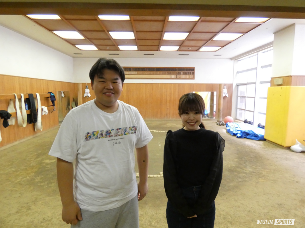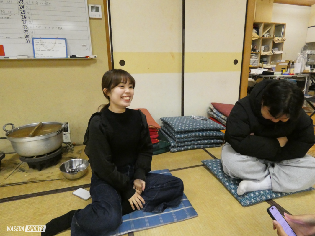 大学で「何かに本気で打ち込みたい」と思っていた岸本恵果(人4=鹿児島中央)。同学年の川副楓馬(スポ4=熊本・文徳)の友人の紹介で相撲部を見学したことをきっかけに、1年生の12月にマネージャーとして入部した。「部員の雰囲気が温かく、自然体でいられる空気に惹かれた」と語る。当時は先輩マネージャーが休部中で、試合も少なかったため、監督や部員、同学年の鈴木大介(法4=埼玉・早大本庄)にちゃんこ鍋の作り方から丁寧に教わりながら、少しずつ仕事を覚えていった。