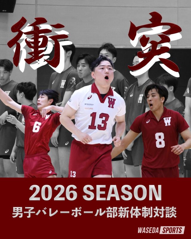 (扉絵 山口愛結) 今年度のスローガンは、お互いの意見をぶつけあい、チームとして向かっていく思いを込めた『衝突』。 新体制を迎えた早大男子バレーボール部はどのような軌跡を歩んでいくのだろうか。 第1回 布台聖主将×麻野堅斗副将×菅原啓副将