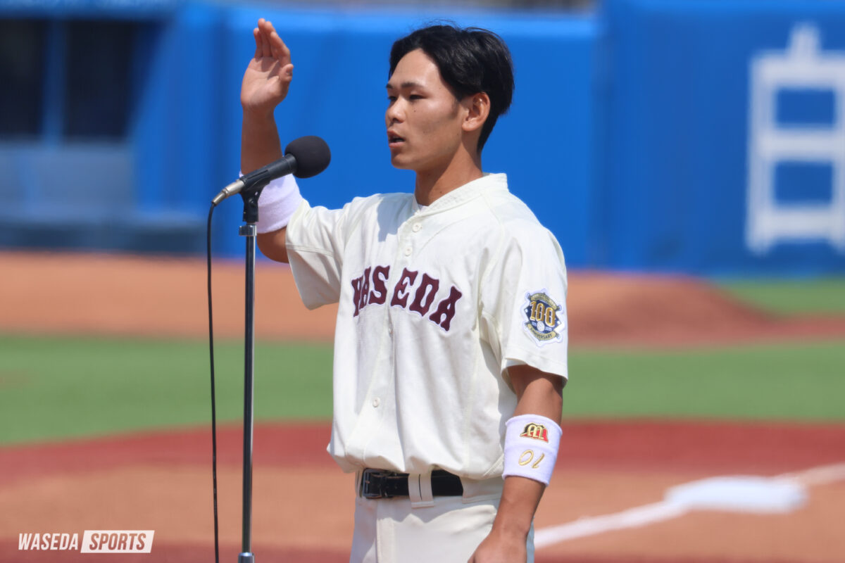 2024年、9年ぶりの春秋連覇を成し遂げた早大。しかし、日本一を目指し臨んだ明治神宮大会では、無念の敗退を喫した。印出太一前主将(令7スポ卒)の力強いリーダーシップの下で一つにまとまっていたチームも、これからは新体制で一からのスタートとなる。「誰がキャプテンになるんだろう」。不安の中、監督室に呼ばれた小澤周平(スポ4=群馬・健大高崎)が告げられたのは、「冗談だと思った」という主将就任の知らせだった――。