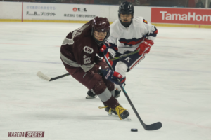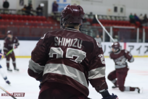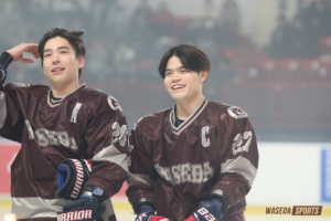 「幼い頃から、早稲田大学に憧れがあった」。そう語るのは、今年度、スケート部ホッケー部門主将を務めた清水朝陽(社4=北海道・武修館)だ。憧れの大学へ入学し、先輩に温かく迎えられた清水は、1年生の頃から試合に出場し活躍していた。今季は主将として「背中で語る」姿で影響を与え、プレー面、精神面においてチームの柱となった。そんな清水のこれまでのアイスホッケー人生、そして4年間の大学生活を振り返る。