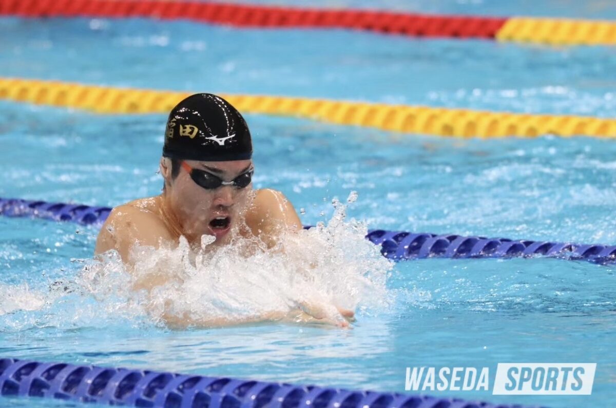 そんな松田が選んだのが、渡辺一平(平31スポ卒=トヨタ自動車)、平川楓(令5スポ卒)ら平泳ぎのトップスイマーを輩出する早大だ。「日本一を目指してやってみたい」とその門をたたいた。1年生の時、メンバーとして加わったメドレーリレーで日本学生新記録を樹立。「メンバーの中では足を引っ張るようなタイム」だったと語ったが、1年生ながら歴史に名を刻む活躍を見せた。