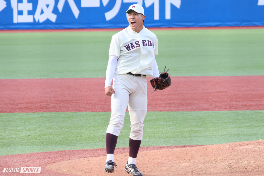 自分が初めてベンチ入りしたのが1年秋の早慶戦だったのですが、周りを見て楽しめなかったので、今回最後っていうこともあるんですけど、応援であったり、周りの環境をしっかり見て、学生野球で神宮を埋めて野球ができるって環境は他にないと思うので、そういう状況を楽しんで放りたいなっていう風に思っています。もちろん結果は求めていくんですけど、本当に早稲田の後ろを任されるピッチャーとして、最後良い形で終わって2連勝してチーム全員で笑って終われればもういいかなっていう風に思います。