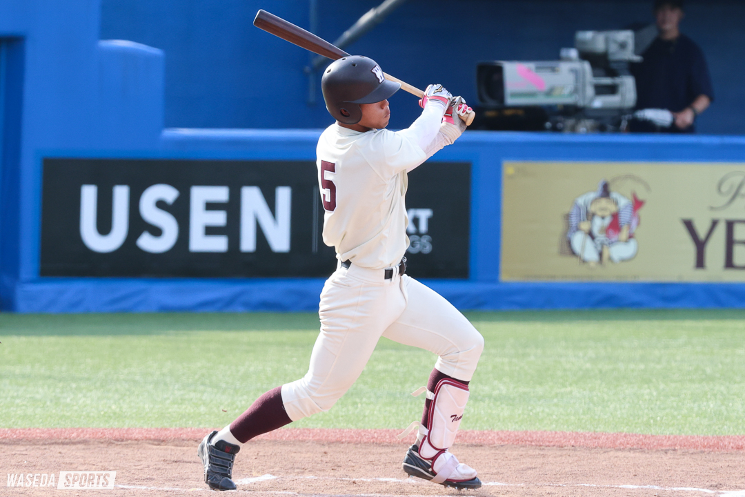アウトにとにかくならない。石郷岡(大成、社4=東京・早実)にいかにいい形で繋げるかということを、常々考えていました。それこそ右中間に打球を飛ばそうとなった時にボールを長く見れたことで、選球眼も良かったのかなと思います。そういうのが作用したのかなと思います。