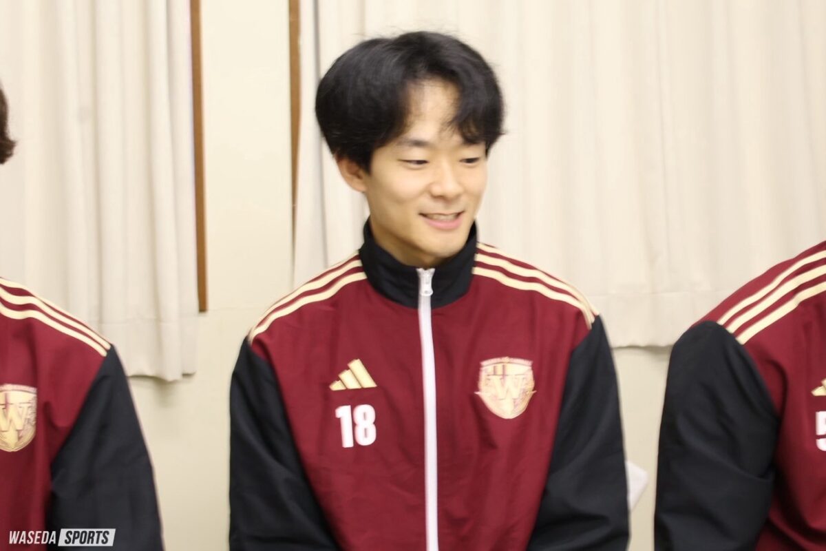 朝日 秋リーグは春と同じ結果で、勝てたところも春と同じで夏休みの鍛練期を終えて秋は変わらずという感じではあったんですけど、けがが増えてきて団結力が高まってきて筑波戦で、逆転で勝ったという結果があるので、そのまま行けたらなと思っているんですけど。その逆転劇はすみません(笑)、出張でいなくて、残念だなという形で終わってしまって。個人としても試合には出れていなかったので、そのままでは終わらないようにインカレに向けて頑張っていきたいと思っています。