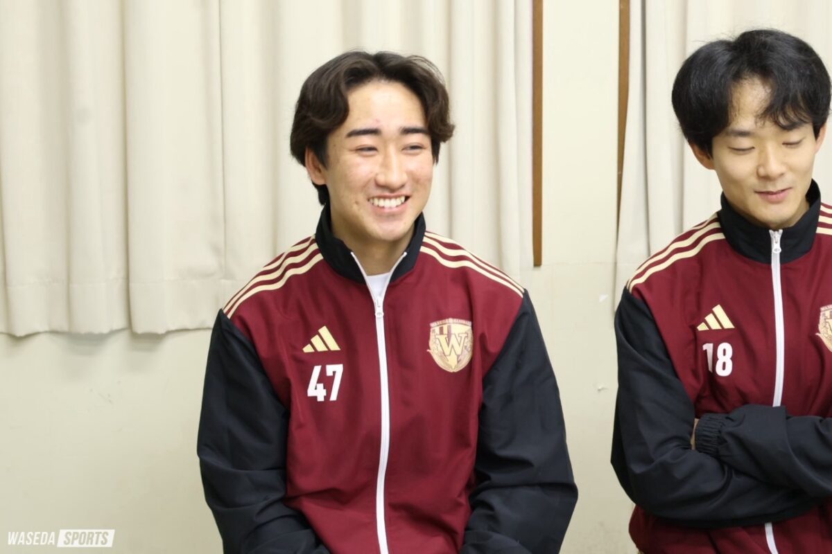 西村 チームとしては良くも悪くも今までの早稲田の雰囲気とは違ったリーグになったと思っていて、これまでだと勝たなきゃいけないところに負けるけど、勝てるかなというところに勝ったりして盛り上がるというのが結構これまでの早稲田という感じだったけど、今年は勝つべくところにしっかり勝ったというか、逆にちょっと分が悪いなというチームに対して全く勝負にならない試合だったり、惜しかったけどまくられて負けた試合がすごく多かったというのが印象ですね。個人としては、夏にけがしたりとかでベンチに入れない試合もこれまでのリーグよりもそれが多くて、自分としては気落ちしていた部分もあったんですけど、外からチームがどう勝負するのかを見る中で、足りないもの、今のチームに必要なものが見えてきた気がするので、インカレでそれがちゃんと修正していければいいかなと思います。
