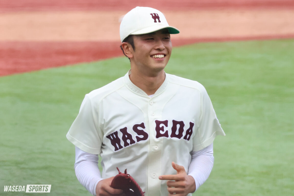 安田 もちろん、投手をやる上で先発は絶対にやりたいです。ただ、彼(高橋煌稀)もいますし、誇南さん(宮城誇南、スポ3=埼玉・浦和学院)もいますし、先発が盤石な状態だと思っています。チームのことを考えた時に、任されたところで100%抑えるパフォーマンスがベストだと思っているので、もちろん先発をやりたい気持ちはありますけど、リリーフはリリーフでしっかりとプライドを持って投げなければいけないなというのは、この2年間を通して、去年田和さん(田和廉、教4=東京・早実)という大魔神のような存在がいたので、見習っていかなければと思っています。