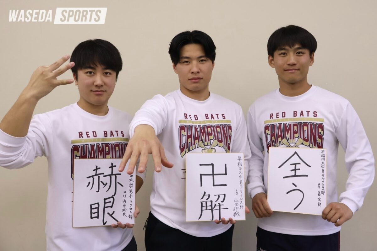 第1回に登場するのは、今年度井原組のOFリーダーを務めるAT吉田宗一郎(教4=東京・早実)、OFサブリーダーを務めるAT山田伊織(国教4=早稲田佐賀)、MF内田玲央(商4=東京・國學院久我山)。学生日本一に輝いた昨シーズンを振り返るとともに、OFリーダー・サブリーダーとして臨む今年度の意気込みについて伺った。