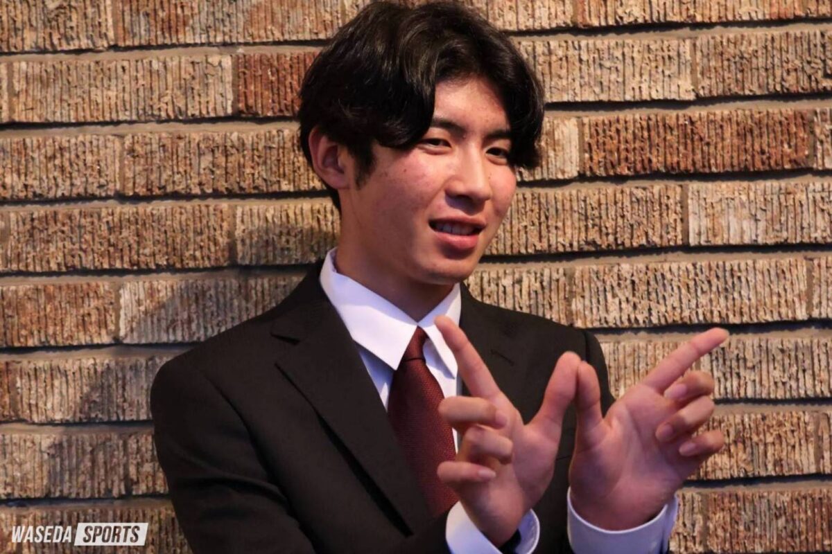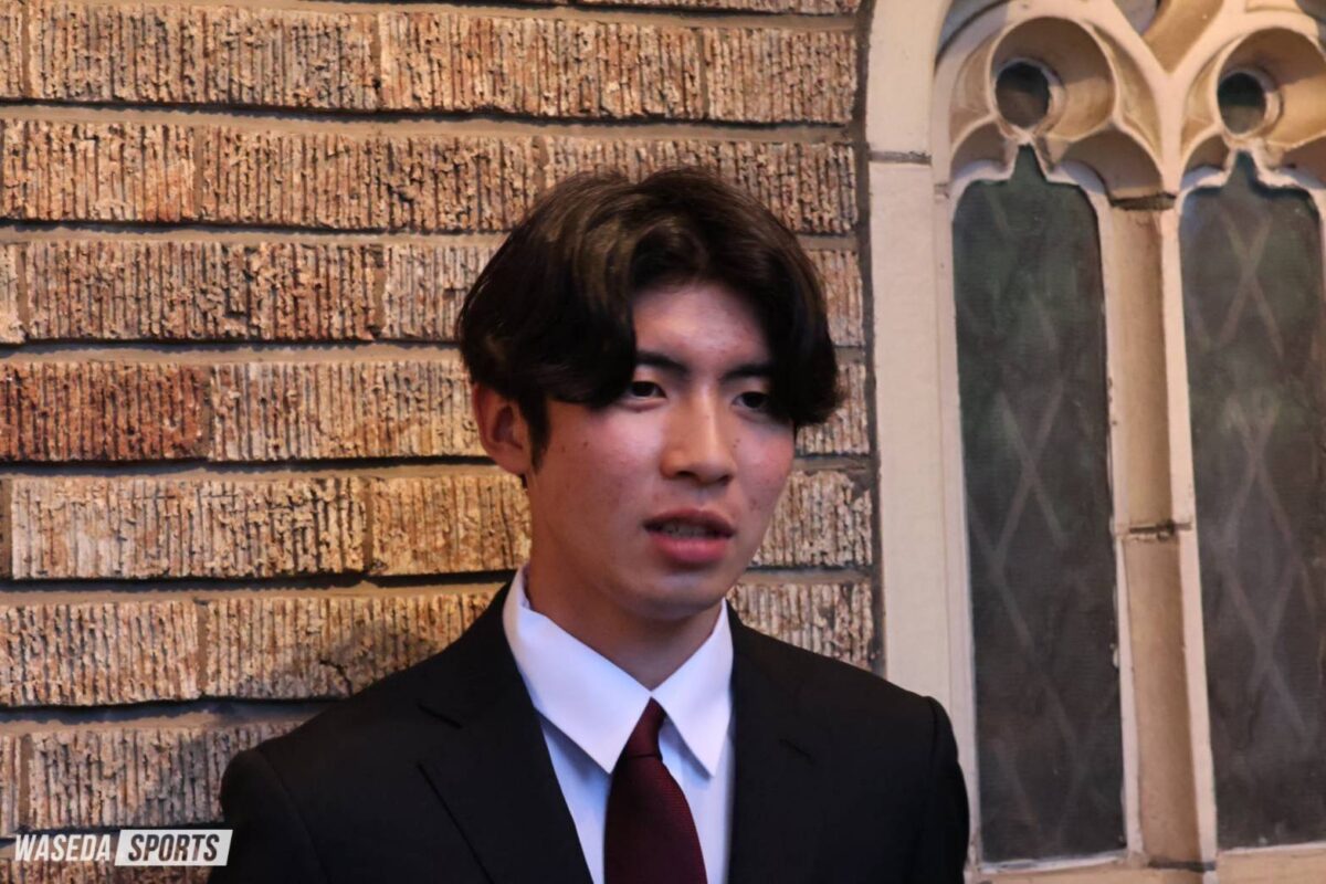 1年前、鈴木琉胤(スポ2=千葉・八千代松陰)先輩や佐々木哲(スポ2=長野・佐久長聖)先輩が取材を受けていた場所に、こうしていられることがすごく光栄です。早大での4年間が始まるという実感が湧き、ワクワクしています。