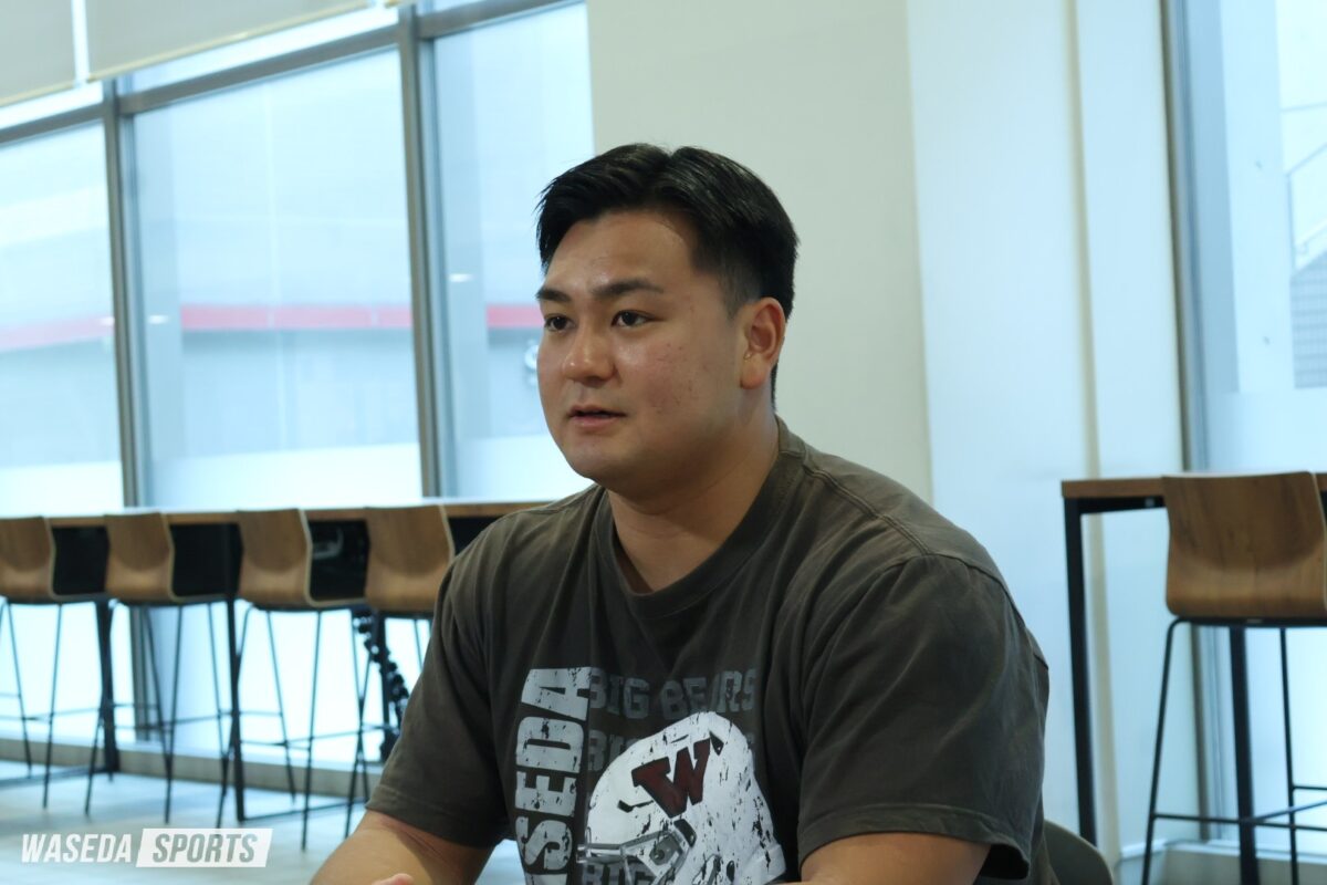 平山 小中は野球をやっていて、高校もやろうと思っていたのですが、最終的には辞める決断をしました。その時に色々なテレビや動画とか見て、アメフト結構かっこいいなと思いました。高校からできれば良いなと思っていたのですが、地方出身でアメフトをする環境がなかったので、高校時代は体を鍛えて、大学で良いチームに入りたいと思い、早大に入学してアメフト部に入りました。