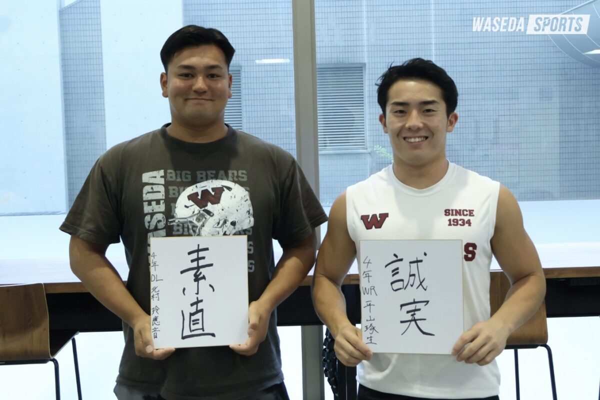 第2回は、副将を務めるWR平山琢生副将(スポ4=千葉・匝瑳)とDL北村玲應音副将(文構4=東京・早実)の2人が登場する。副将の立場としてチームをまとめていく際の思いやご自身の今シーズンに向けた抱負を伺った。