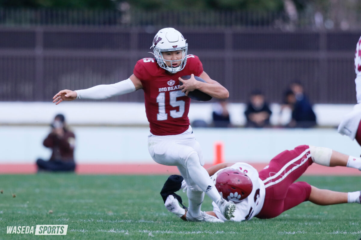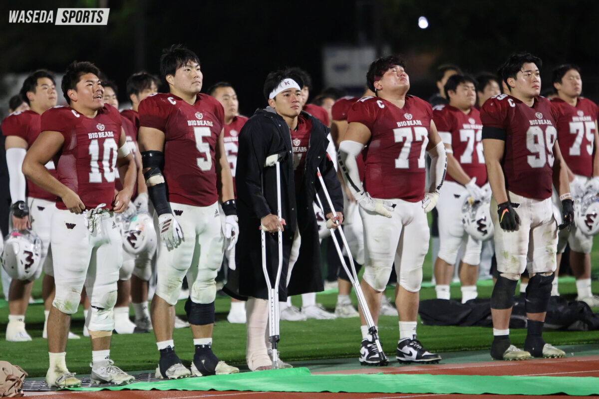 今春は、立命大相手に0-49で敗れた。思えばこの悔しさこそが今シーズンの原点だった。鍛え抜いたファンダメンタル、強化したフィジカル。その積み重ねが身を結び、関東優勝を達成し、春には歯が立たなかった相手に堂々と勝負を挑むまでに成長した。それでも、日本一には届かなかった。試合を終えた功能主将は、日本一への厳しさを痛感しながらも「本当にみんなで成長できたかな」と振り返る。一歩ずつ、着実に。この悔しさを胸に、早大BIG BEARS日本一への挑戦が、再び始まる。