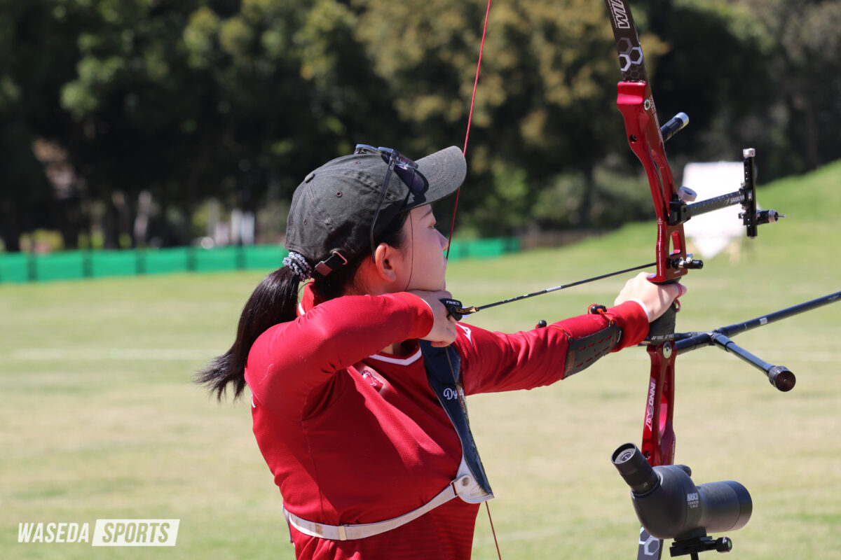 春の好天のもと開幕したリーグ戦第1戦では、髙橋梨杏女子主将(スポ4=神奈川・横浜)が安定した行射でチームをけん引した。前半をチーム内トップの個人14位で折り返し、続く後半も点数を伸ばして303点を記録し、最終599点の個人13位で試合を終える。浅田陽香(スポ3=東京・昭和)も安定して高得点を記録し、存在感を示した。一方チームは前半1096点で12校中12位と大きく出遅れ、後半は順位を上げたものの9位にとどまった。
