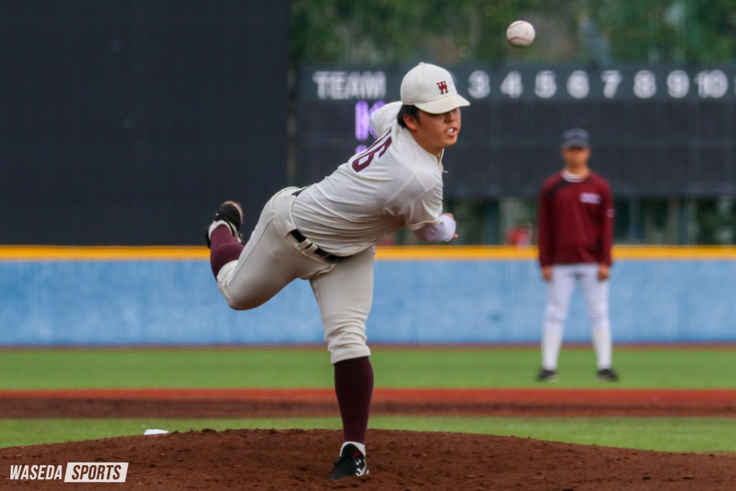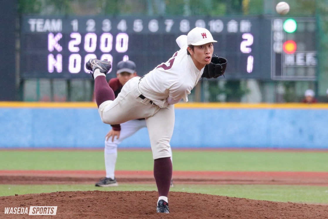 救援の小松龍一(スポ2=岩手・花巻東)は変化球を散りばめながら2回無失点の好投。齋藤士龍(文3=東京・早実)は自慢の速球で相手打者をねじ伏せた。8回は矢後和也(スポ4=東京・日大三)が2死一、二塁のピンチを招きながらも0封。最終回はこの日も香西一希主将(スポ4=福岡・九州国際大付)が安定した投球を見せ、2三振を奪った。