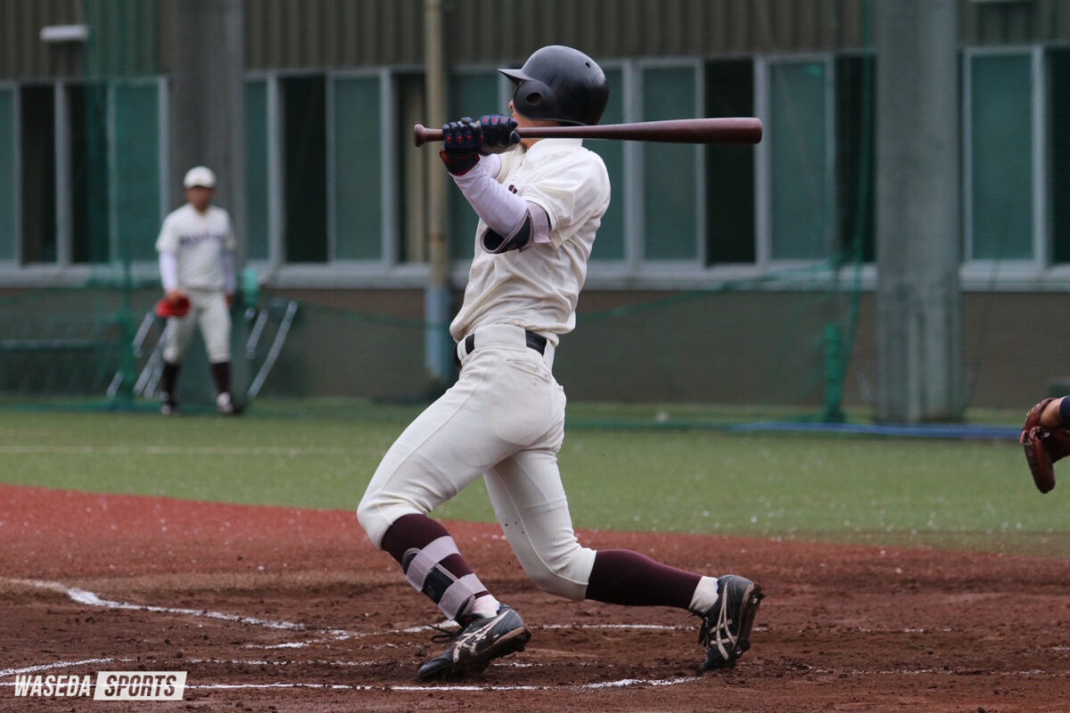 しかし打線はわずか1得点のまま沈黙。9回は尾形樹人(スポ3=宮城・仙台育英)と大内碧真(スポ4=埼玉・浦和学院)のヒットで2死一、二塁のチャンスをつくったものの、壽田悠毅(社4=東京・早実)が投ゴロ倒れ試合終了。1-2で惜敗した。