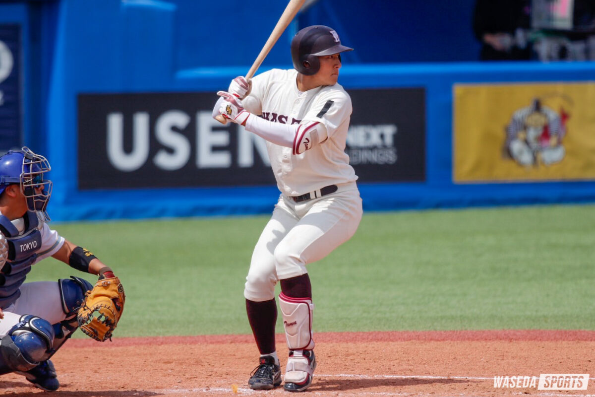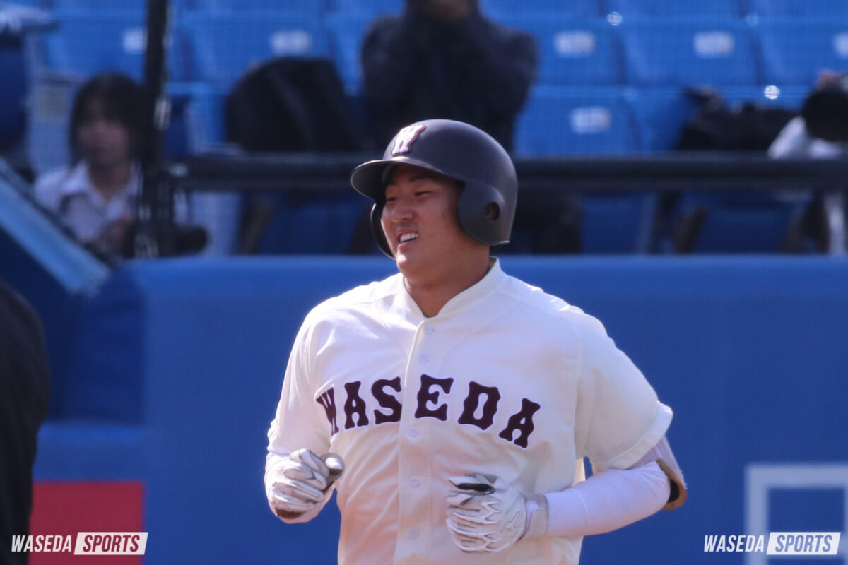 また開幕戦といえば、尾形樹人(スポ3=宮城・仙台育英)の活躍に触れないわけにはいかないだろう。印出太一(令7スポ卒=現三菱重工East)、吉田瑞樹(令8スポ卒=現明治安田)と早大の正捕手は強打の選手が続いており、尾形にはディフェンス面だけではなくオフェンス面での活躍も期待されている。『優勝するチームには名捕手あり』という言葉もあるとおり、今後のリーグ戦においてもその存在はより大きなものになるだろう。