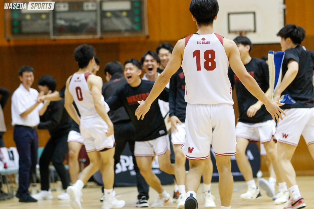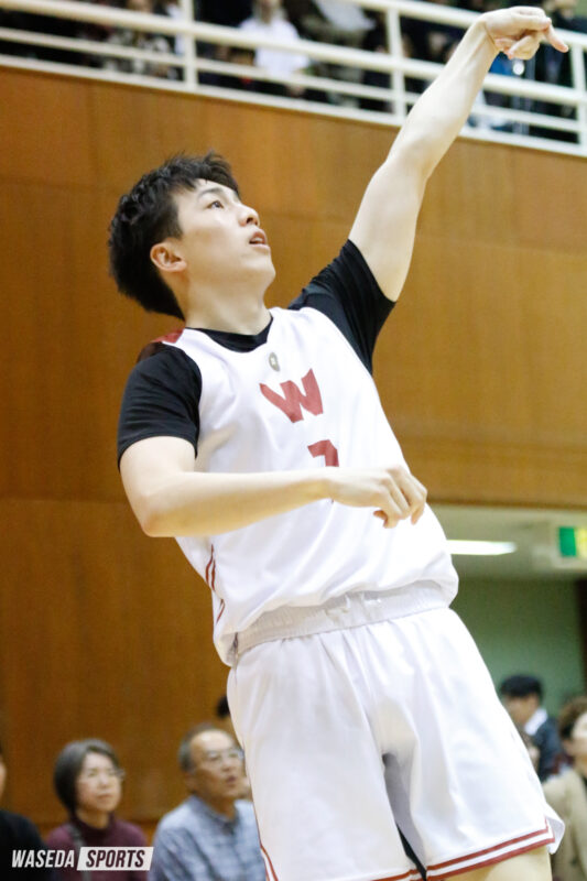 第4Qは岩屋主将が着実に得点を重ね、リードを保つ。終盤には東海大が3Pシュートで反撃を見せたが、28点のリードは早大にとって十分だった。最後は岩屋主将がフリースローを沈め、今季最多得点の110-90で試合終了。優勝争いを左右する天王山で衝撃の快勝を収めた。チームの3Pシュートは20/40で50%の成功率。5本の3Pシュートを沈めた下山は「自分でもビックリするくらい入った」と振り返った。