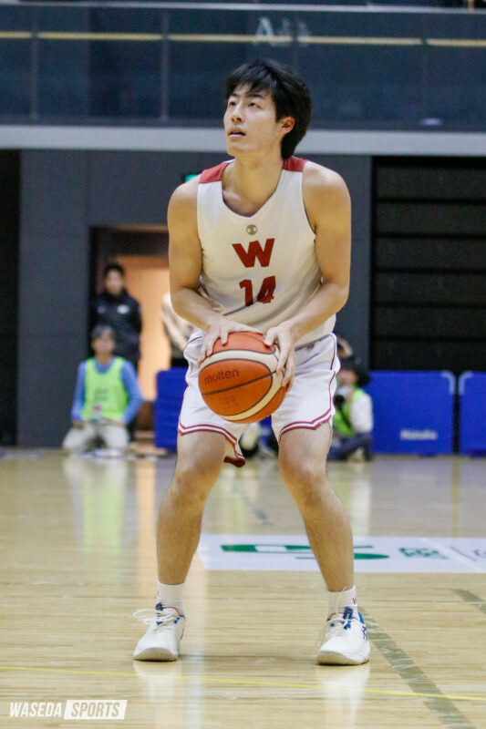 代々木は早稲田のホームですし、前に日大とやった時も代々木で自分たちのバスケを表現するいい試合ができました。そのいいイメージをしっかり持って、ディフェンスはしっかり一つずつ我慢してプレーしたいです。今日はあまり点数が伸びなかったので、明日は早稲田らしい攻撃のバスケを展開したいと思います。