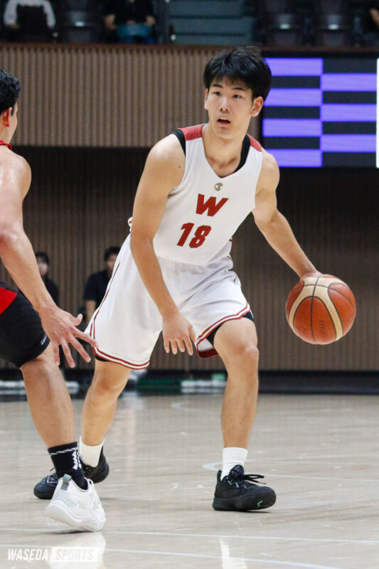 岩屋は身長183センチのポイントガード(PG)兼シューティングガード(SG)。京都の名門・洛南高から早大の門を叩いた。大学では初年度から司令塔としてプレータイムを獲得すると、それまでのエース・星川堅信(令5スポ卒=現長崎)の卒業を受けた3年時から得点力が開花。昨年は関東大学リーグ戦(リーグ戦)で優秀選手賞、全日本大学選手権(インカレ)で敢闘賞を獲得し、早大の大躍進に貢献した。3人制バスケットボールの選手としても活動しており、昨年4月には3人制バスケットボールのプロチーム・SHINAGAWA CITY.EXEと契約。同年8月には3x3U23日本代表に選出された。