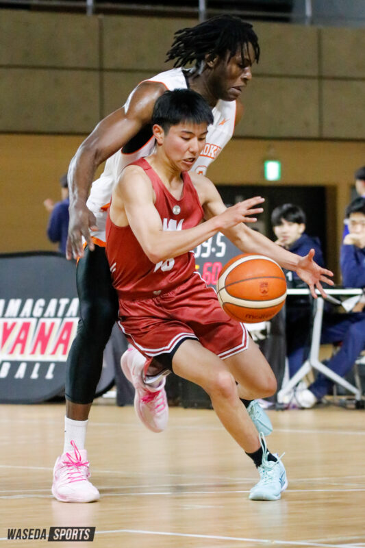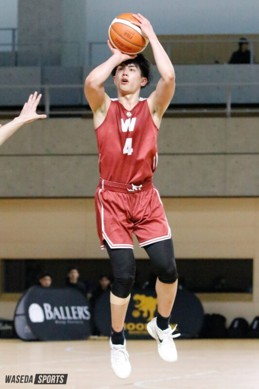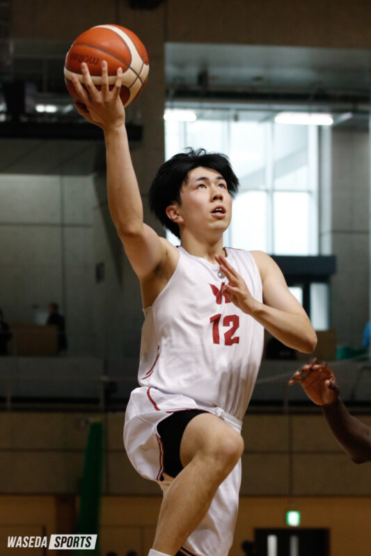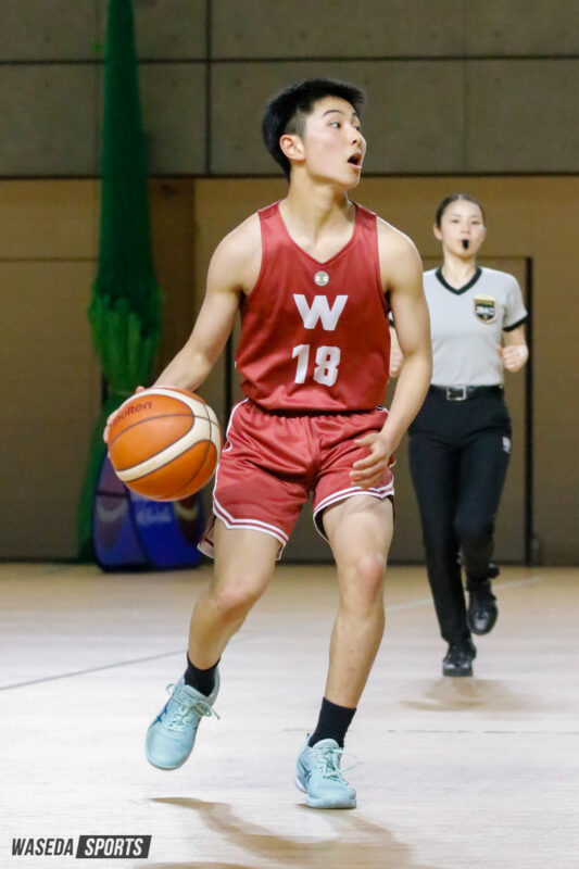 1戦目は柳ヶ浦高との対戦。城戸主将のバスケットカウントで先制すると、宇都宮ブレックスの特別指定選手としてさらに進化を遂げたF松本秦(スポ2=京都・洛南)はレイアップからの会場を沸かせるエンドワンを獲得する。続く第2QではF三浦健一(スポ4=京都・洛南)3Pを5本沈めると流れは完全に早大に。一度もリードを許すことなく、105-59と柳ヶ浦高を圧倒し大学生としてのプライドを見せた。