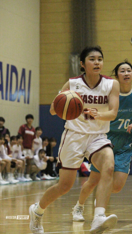 最終Q、第3Qの勢いのまま早大ムードかと思ったが、流れは一転。序盤から相手のディフェンスに捕まり得点できない時間が続き、すかさずタイムアウトを要求。悪い流れを切りたい早大だが、後半の疲れもあってか相手に7連続ポイントを許してしまい、一気に2点差まで詰められる展開に。しかし終盤、早稲田も粘りを見せる。衣川が3Pを決め、リードを守り切った。残り時間も1分を切った中、藤澤夢叶(山梨学院大・3年)の3Pで1点差となったが、集中力を切らさず戦い続け68-65で勝利した。