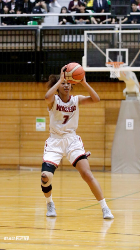 第4Q、早大は西副将の連続3Pシュートをはじめとした怒涛(どとう)の連続得点で松蔭大を一気に突き放す。気を緩めることなく点差を広げ続け、最後には阿部のシュートで得点を3桁に乗せた。試合は101-59の大差で終了。絶対条件の1部残留を決めた。