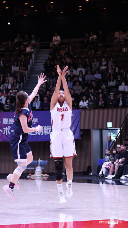 早大の柱はF西ファトゥマ七南副将(スポ4=千葉・昭和学院)とF菊地実蘭(スポ3=愛知・桜花学園)の大学日本代表スコアラーコンビだ。