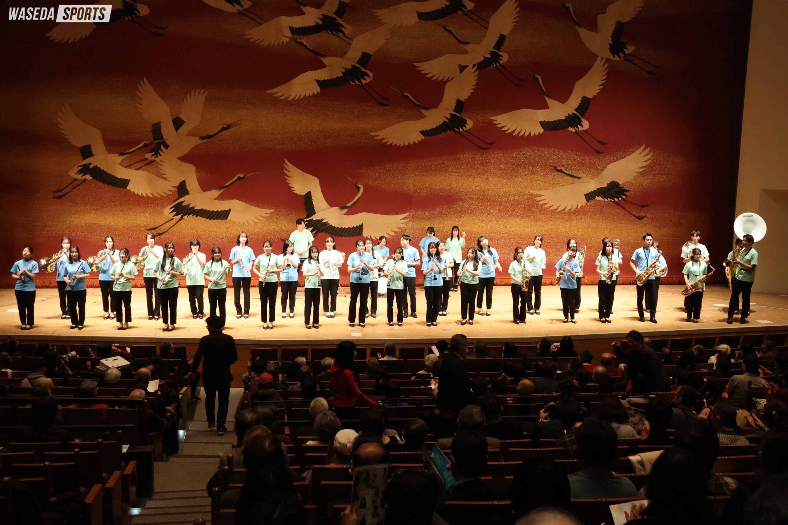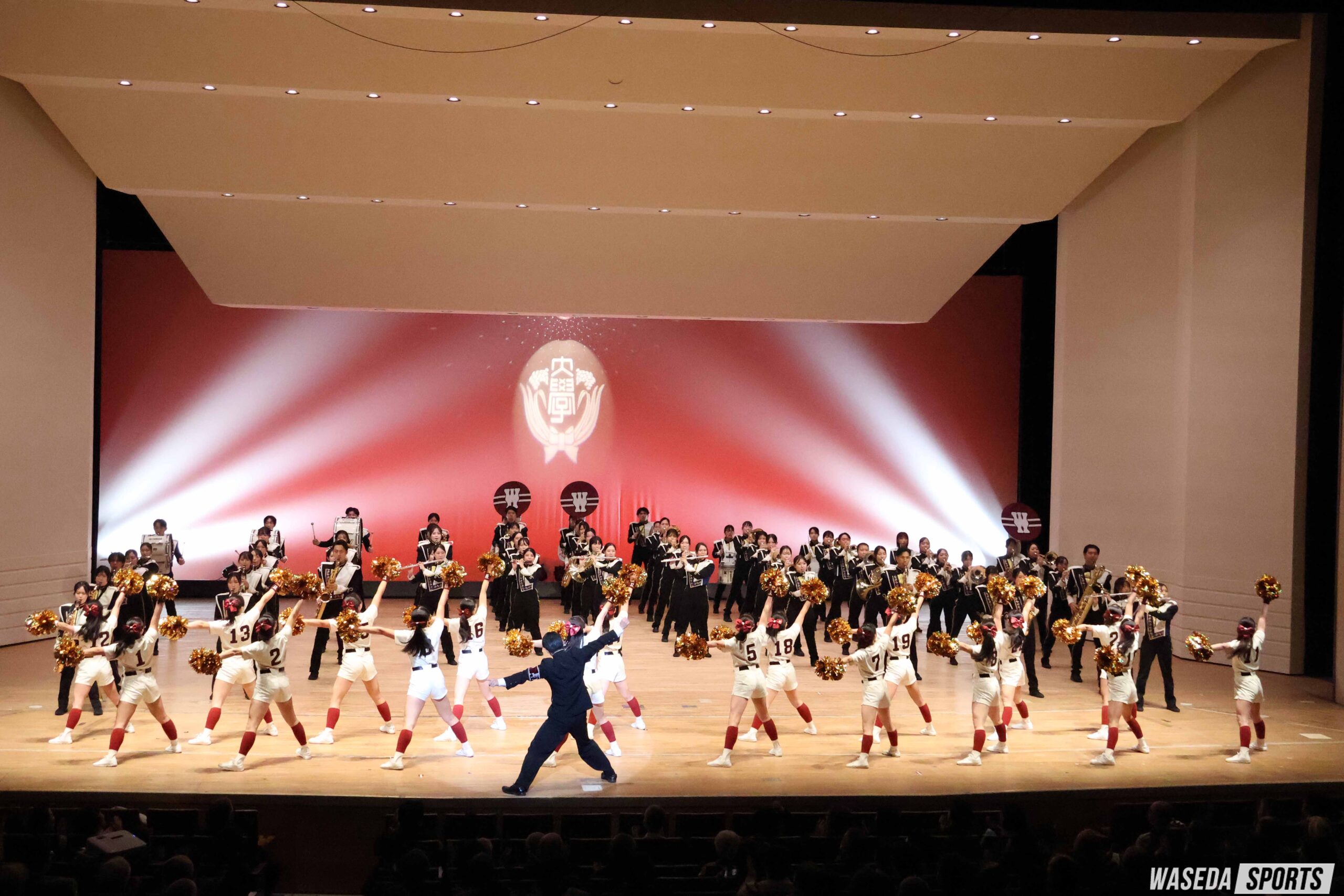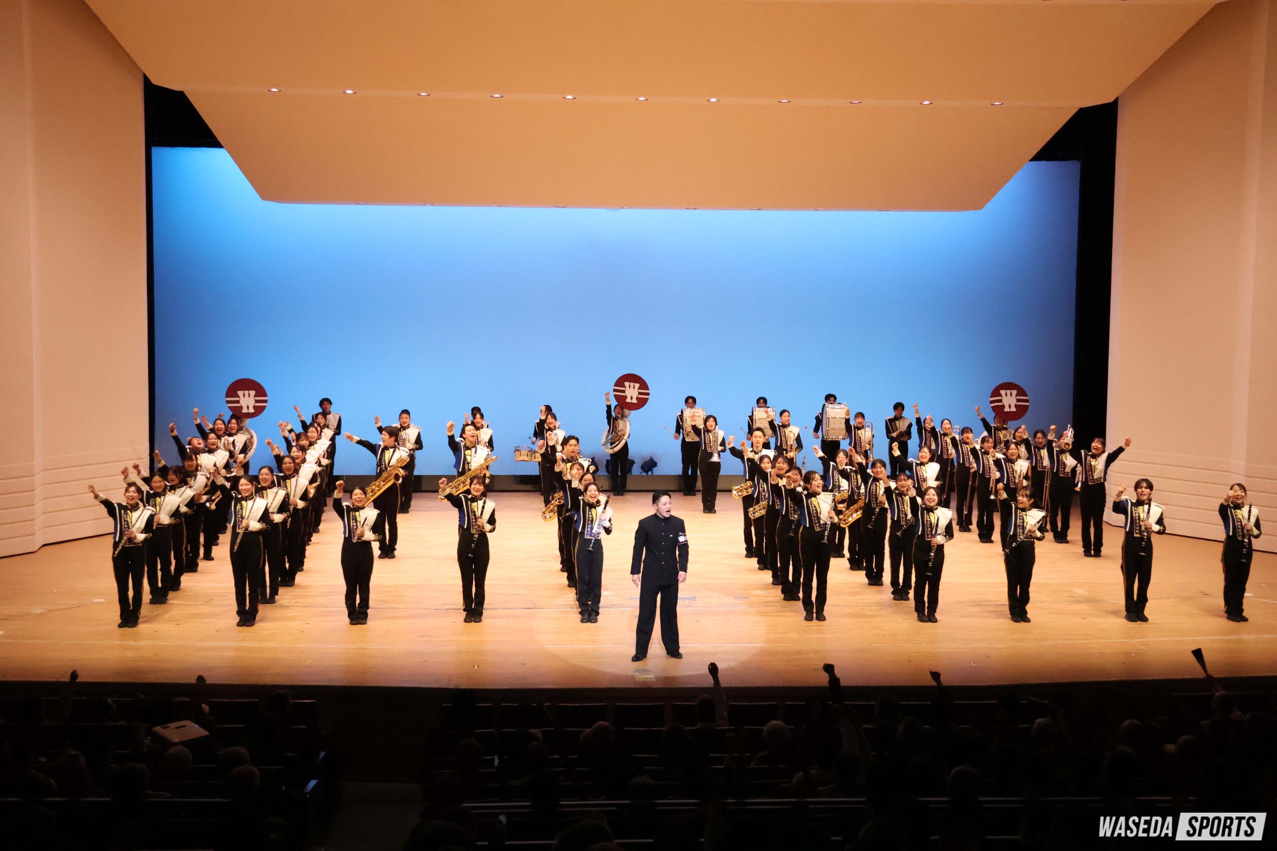 ドリルステージのMC(グレイテストショーマン)全てです。同じバスパート仲間で、心から信頼している同期の萩原(舞花吹奏楽団総務兼器材施設管理責任者兼ドラムメジャー、文構4=大阪・早稲田摂陵)、鈴木(冴乃美ガードチーフ、文4=東京・鷗友学園女)が創り上げてくれた自慢のステージです!とにかくハイセンスで、照明から構成まで含めて完璧なステージだと思っています。ぜひアクションや隊形移動一つ一つに注目して観ていただきたいです。