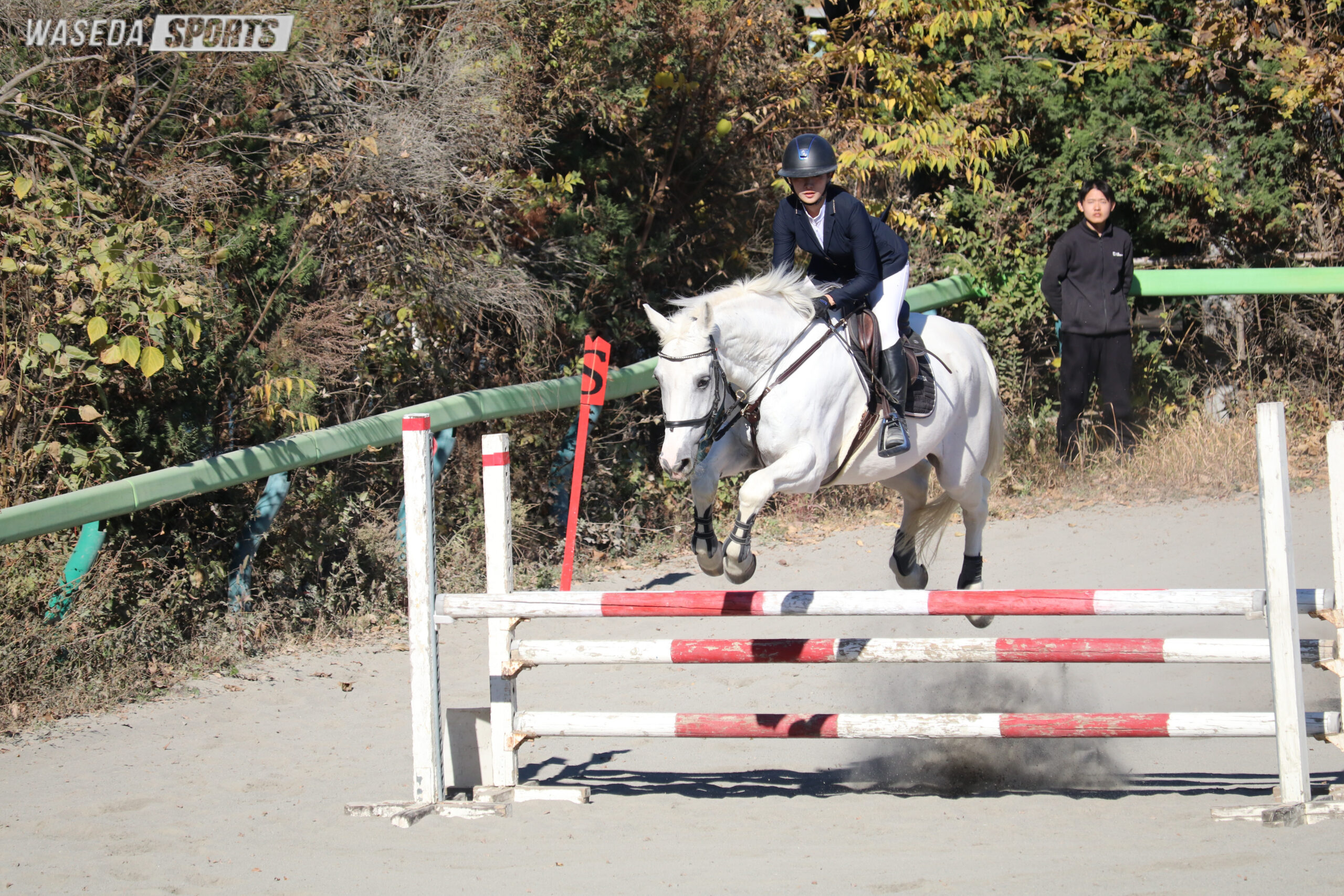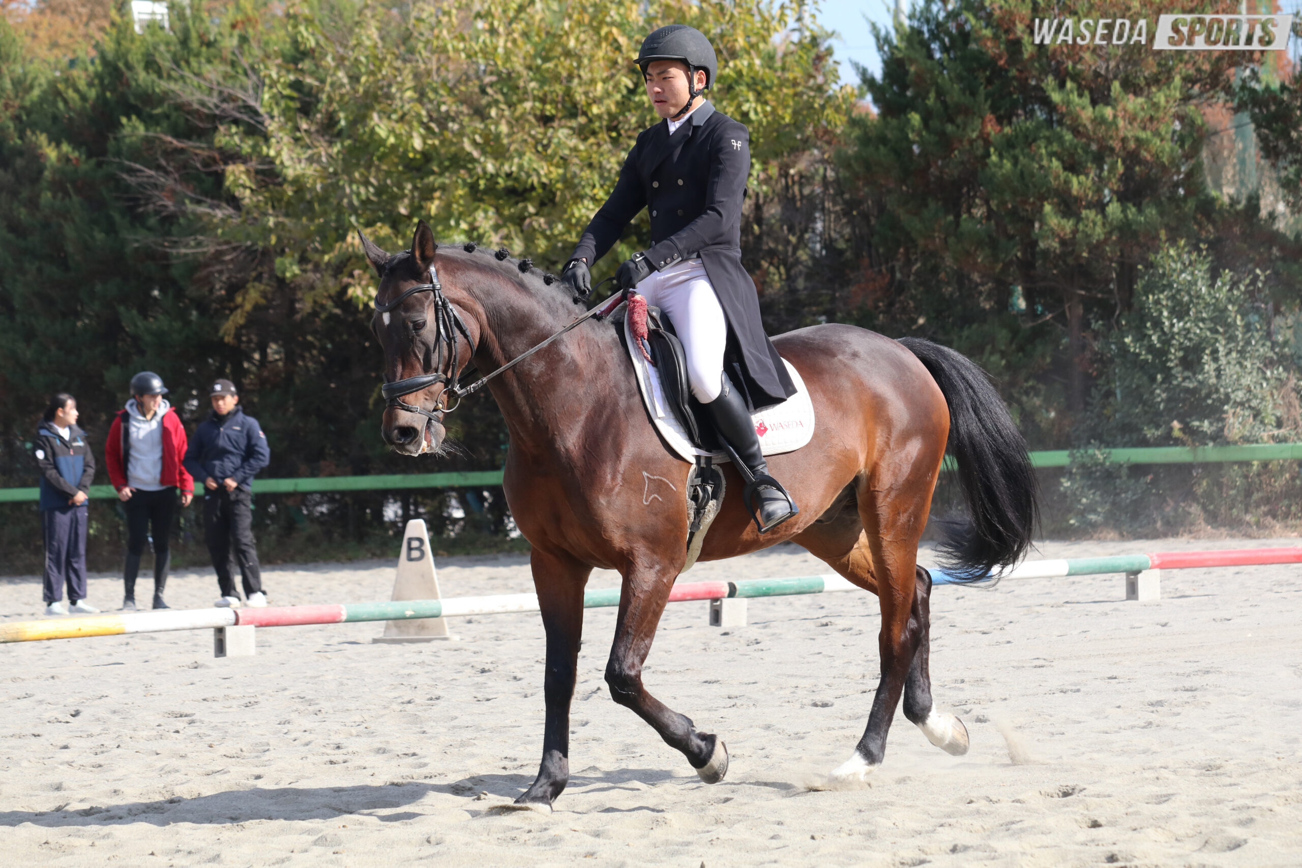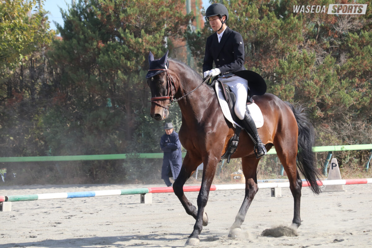 自分が馬術部に入った理由っていうのが、自分が1年当時の2年生で、今年卒業する先輩たちがいたからこそ、自分がこの部活に入ったので、入ってからも当時の2年生に凄いお世話になって指導していただいたり、部活の係の事も教えていただいたので、今回の早慶戦で早稲田の勝利に貢献できた事は嬉しいですし、4年生に自分たちの代が変わるんですけどこれからもいい結果を報告できるように、がんばっていきます。
