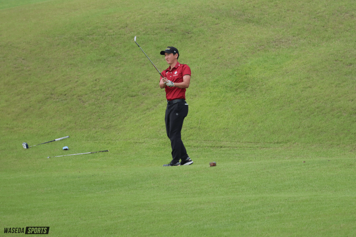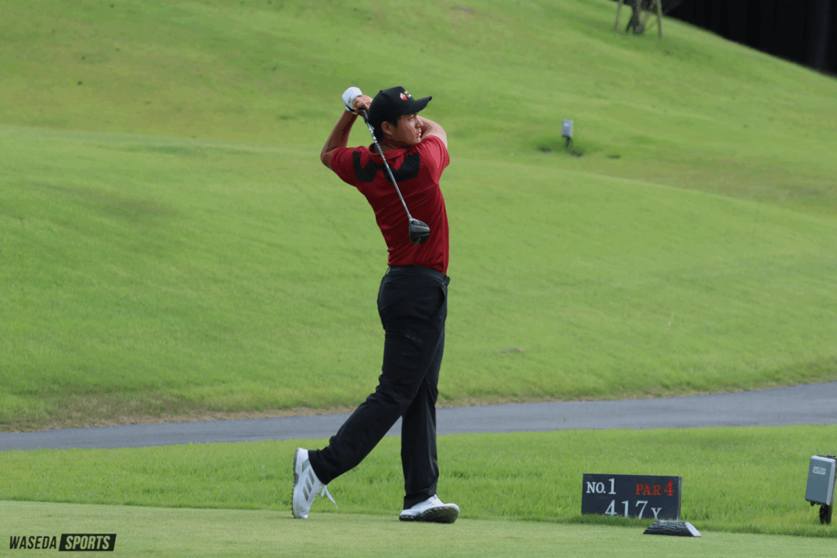 中野麟太朗男子部主将(スポ4=東京・明大中野)を筆頭に、4年生のみで構成されたベストメンバーで今大会に臨んだ早大男子部は、初日に完璧な滑り出しを見せる。中野主将と安保卓哉(商4=東京・早実)がそれぞれ67と69というスコアを記録。竹原佳吾男子部副将(社4=東京・早実)に至っては、今大会の全選手のスコアでベストとなる65をマークする。チーム全体では初日を終えて、合計スコアは273。首位の明大と4ストローク差の2位で2日目を迎えることとなった。
