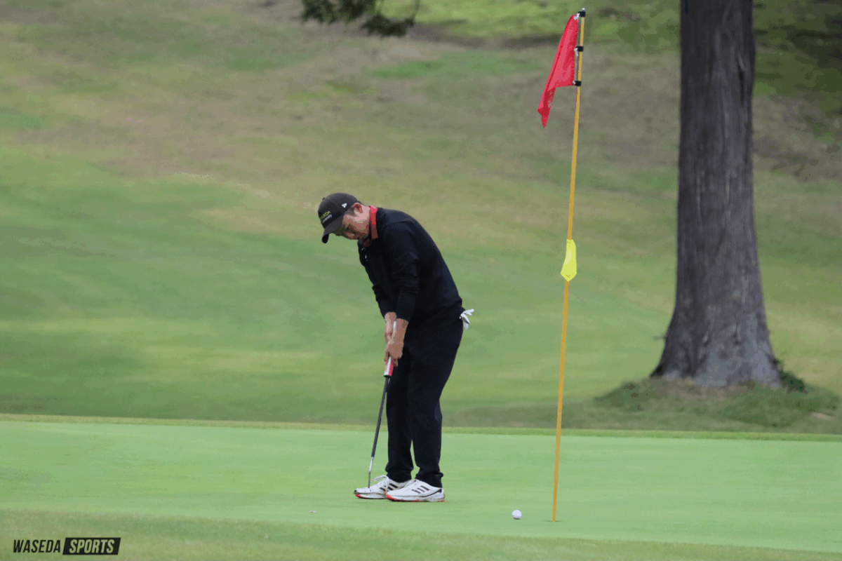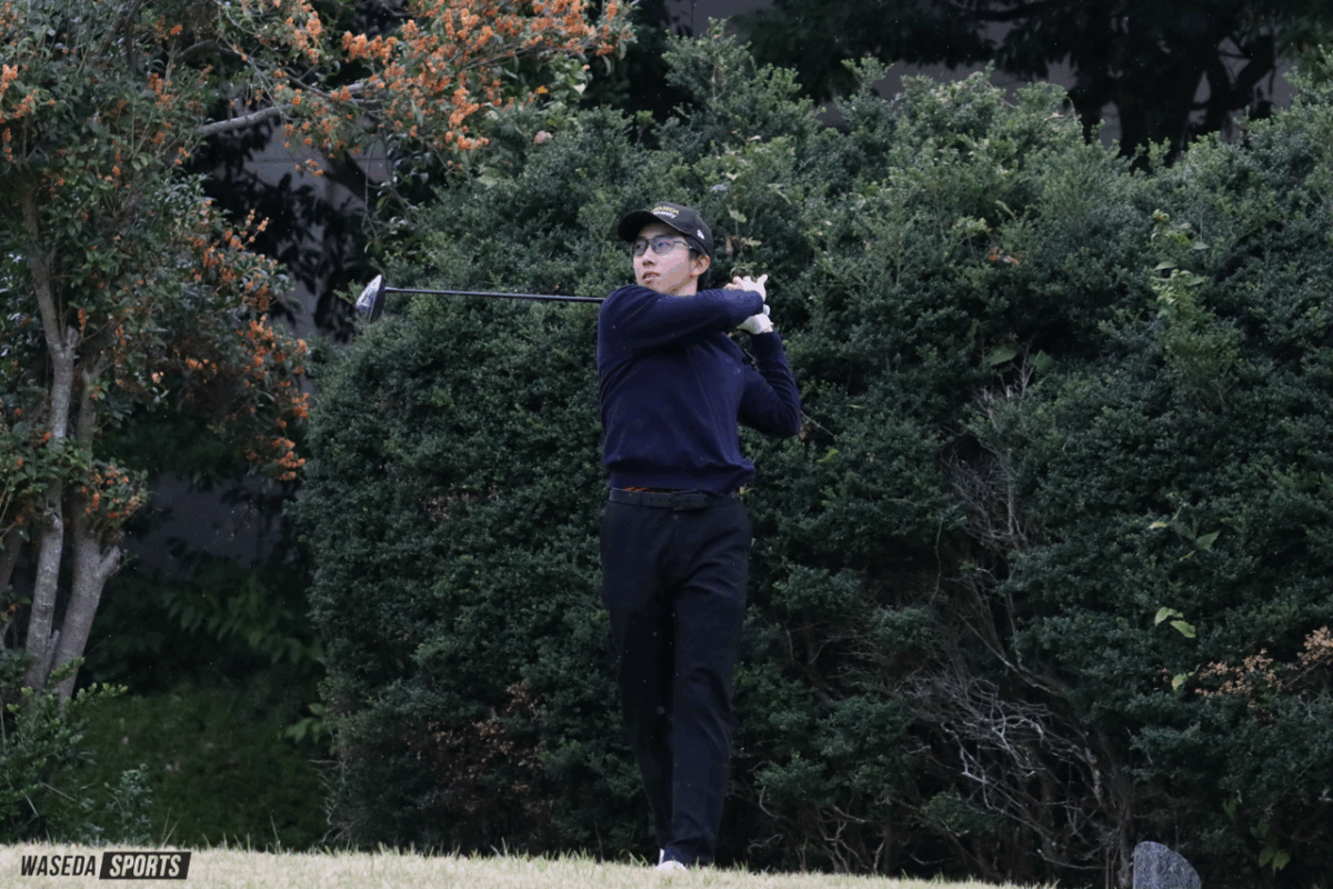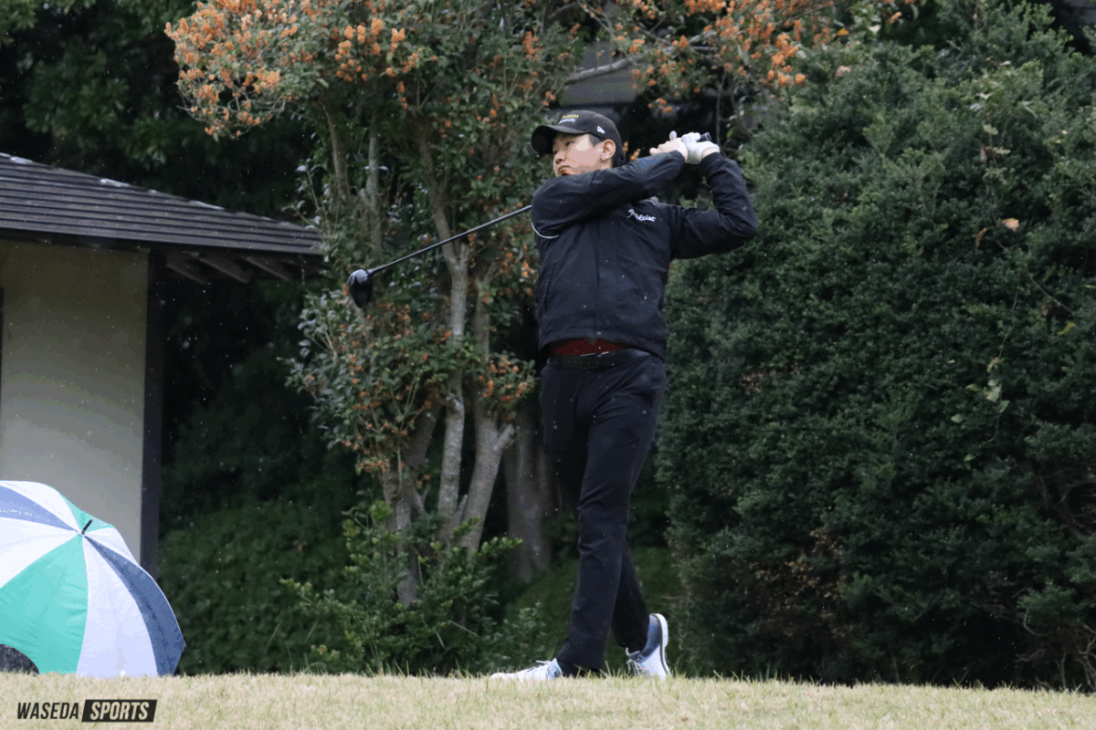 曇り空となった初日は大苦戦となった早大。今大会から新たに早大ゴルフ部を率いることになった平山主将がアウトコースで35、インコースで37の計72のスコアでホールアウトする。しかし、3人の選手がハーフラウンドで40を叩いてしまい、チームの合計スコア307で、良い成績を残せずに初日を終える。新体制の早大は19位という低調なスタートとなった。
