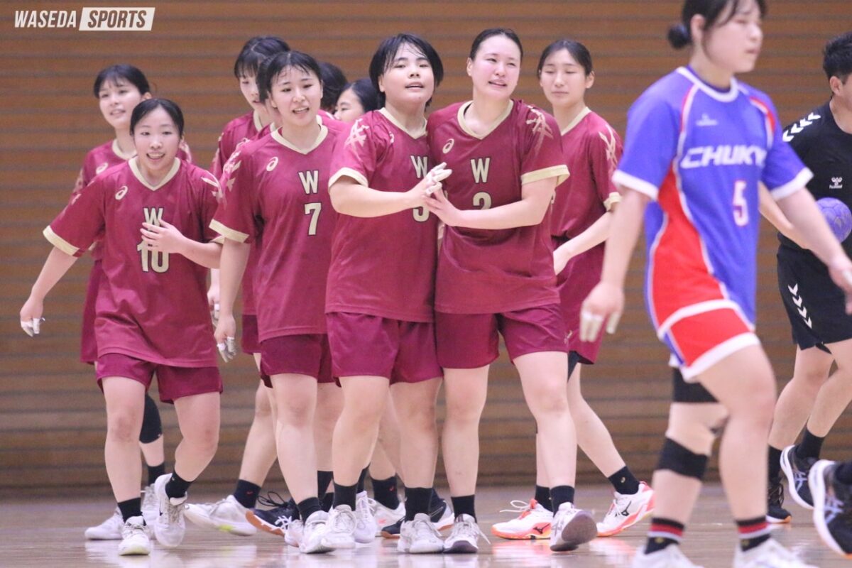 学生ハンドボールの頂点を決める全日本学生選手権(インカレ)が開幕した。目標のメダル獲得に向け、早大は中京大との一戦に臨んだ。試合は、前半から両チーム共シュートが入らない時間が続き9-11とロースコアの展開となる。しかし後半の立ち上がりから、エース山野紗由(スポ4=北海道・釧路江南)らの気迫のこもったプレーが続き逆転に成功。その後も手に汗握る展開が続いたが、集中力を切らさなかった早大が勝ち切り、まずは初戦を突破した。