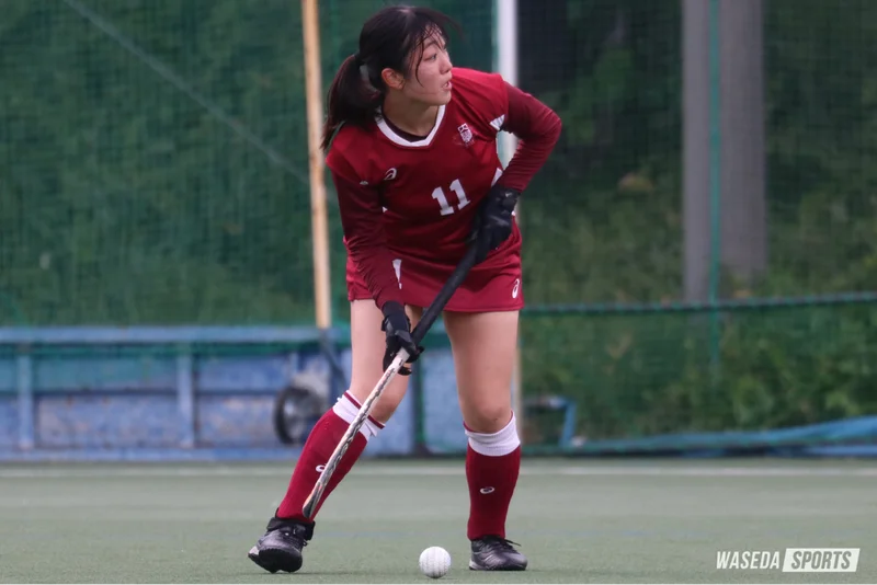 今試合の勝利で関東学生春季リーグ(春季リーグ)Aグループ2位が決まる早大。3戦目も東京・早稲田大学ホッケー場にて、応援団を率いる防衛大との試合が行われた。試合は早大が1クオーター(Q)序盤から主導権を握り、先制点を奪うことに成功。しかし2Qからは防衛大ディフェンスの前に思うような攻撃を展開させてもらえない。それでも3Qに再び追加点を挙げて2点差とすると、最後までこの2点のリードを保って勝利を収めた。勝利を収めた早大は春季リーグAグループ2位を確定させ、上位トーナメント進出を決めた。