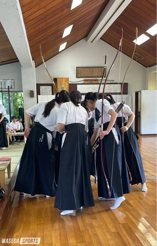 1立目で先攻の東農大は12中。早大は大前の橋本萌花(文構2=東京・早実)の皆中などで計10中し、2本差を追いかけるスタートとなった。これ以上引き離されたくない2立目、小井戸槙(基理2=東京・吉祥女子)と首藤菜那副将(先理4=東京・吉祥女子)が皆中し11中。的中差を1本縮めることに成功した。続く3立目で東農大は再び11中するが、早大はここで伸び悩み9中。1本でも多く詰めリードしたいところであったが、3本差で後半に突入した。