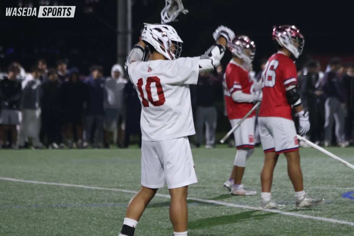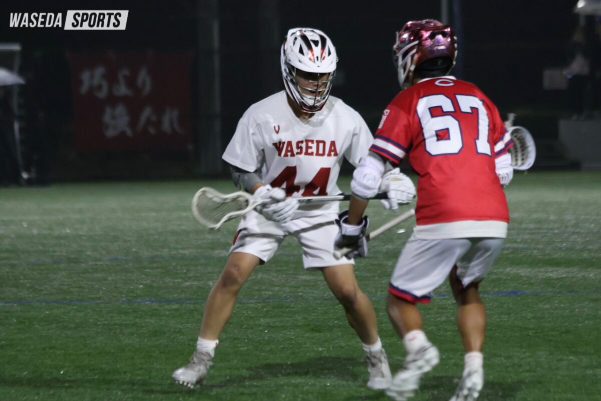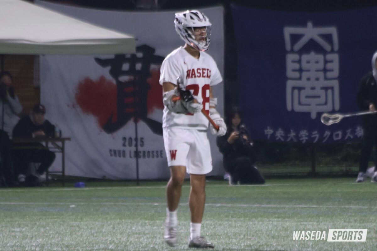 第1Q最初の攻撃はFO綿引匠(先理3=神奈川・横浜翠嵐)のフェイスオフから始まる。そこからテンポよくゴール前を奪い、MF井原幸輝(商3=東京・早大学院)が先制点を決めると、今度はG黒田康希(スポ2=東京・成蹊)がナイスセーブで観客を沸かせる。その熱気をさらに燃え立たせるようなゴールを、DF河西翔永(教3=愛知・名古屋)が決めると、MF大橋陸人(商4=東京・早実)もそれに続く。3連続得点で流れに乗るも、その後相手に痛恨の一点を決められ、3-1で第1Qを終える。