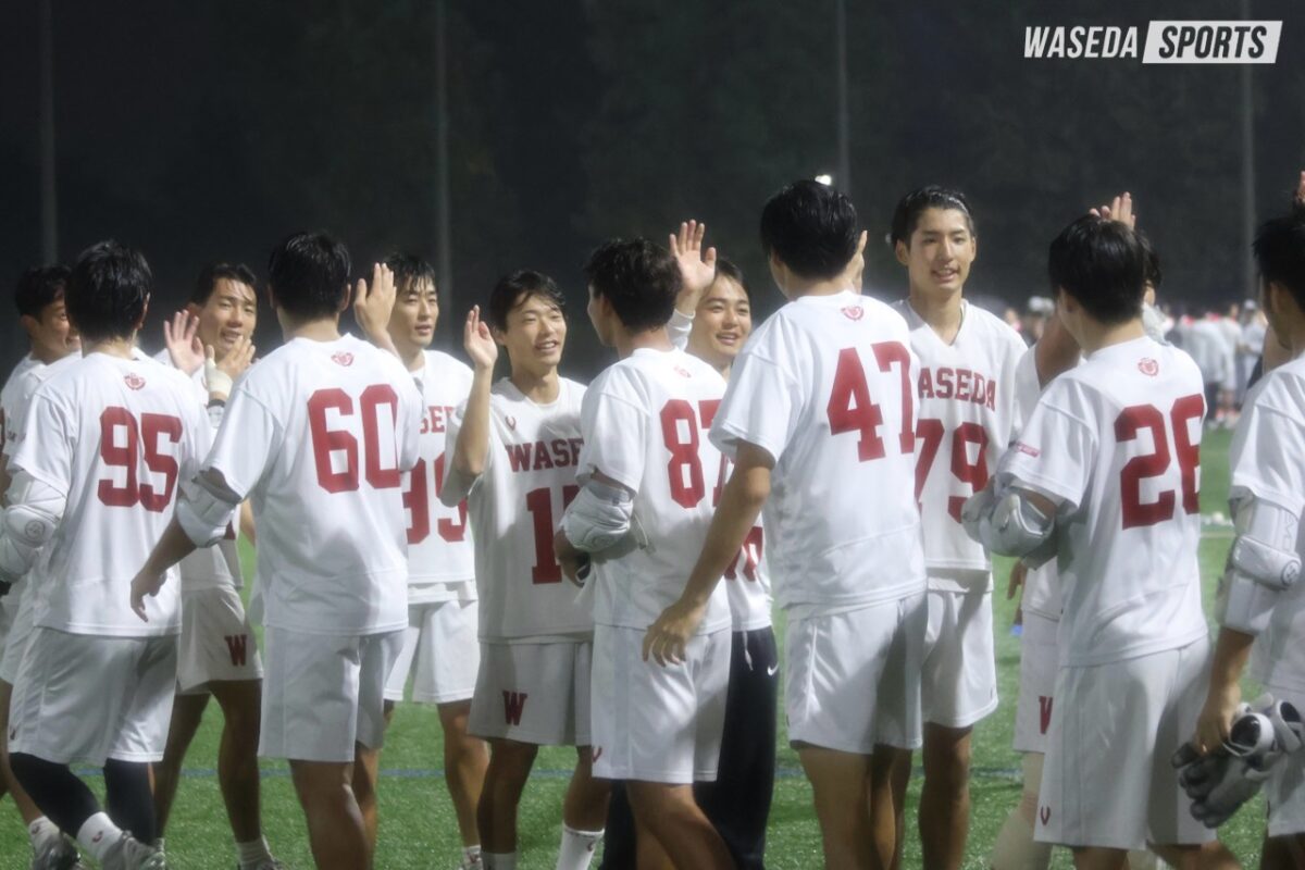 最終第4Q。5-1と盤石なリードを保つ早大は、一年生のAT園部友大(商1=東京・國學院久我山)をコート上に投入する。オフェンス陣は学年問わず、心をひとつにしてゴール前まで攻め入るも、なかなか得点を決められない。対する中大は意地を見せる追い上げで、2連続得点。その差を一気に2点にまで縮める。それでも勝敗を分けたのは、序盤に築いたリードだった。最後まで相手に主導権を渡さず、試合展開を作り上げた早大。6月からの戦いに終止符を打ち、ついに関東Bリーグ頂点の座を掴み取った。