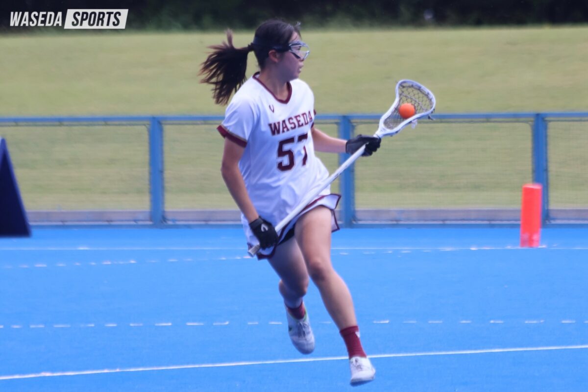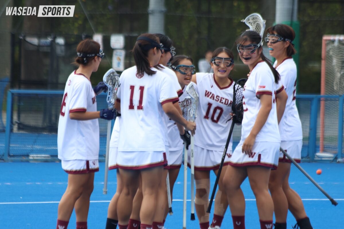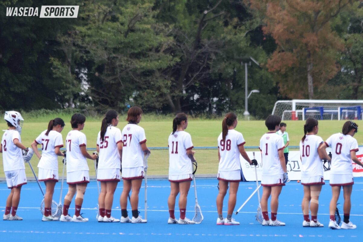 7月に開幕した関東学生リーグ戦は、この日ついに各ブロック上位2校が激突するFINAL4を迎えた。Aブロック1位で勝ち上がった早大は、Bブロック2位の立大とラクロス全日本大学選手権大会出場をかけて対戦。試合開始のドローを制した早大は、MF増田明香(法4=東京・国学院久我山)のショットで先制し、最高の立ち上がりを見せた。しかしその後は立大に流れを奪われ、最大7点のビハインドを背負う苦しい展開に。それでも最終クオーター(Q)には、チーム一丸となって攻撃を仕掛け、全国への強い思いを体現した。最後まで執念のラクロスを見せたものの、5-9で力及ばず。「学生王者・連覇」の夢は道半ばで幕を閉じた。