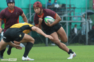 早大と慶大。常に並び立ち、あらゆる場面で比較され続ける宿命のライバル。受け継がれた伝統、そして誇り。そのすべてを懸けて、大学スポーツ界を牽引してきた両雄が激突する。この春、新たに早大ラグビー蹴球部の門を叩いた新入生たちが、稲穂の誇りを胸に新人早慶戦に挑んだ。大粒の雨が降りしきる中、試合は序盤から両校の意地がぶつかるコンタクトの応酬に。慶大に先制を許すも、前半終了間際、SO古瀬莊(スポ1=静岡聖光学院)の絶妙なキックで敵陣深くまで攻め込み、早大が執念の一撃を返す。スコアは7-7のまま折り返し、勝負の行方は後半へ。しかし、後半は慶大の強固なディフェンスに苦しめられ、主導権を奪い返せない。守りからリズムを掴んだ慶大が着実に加点し、最終スコアは7-22。早大新人たちにとっては、悔しさの残る船出となった。
