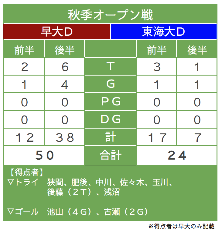 秋季オープン戦 11月16日 対東海大D 早大・上井草グラウンド