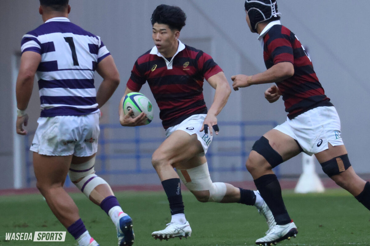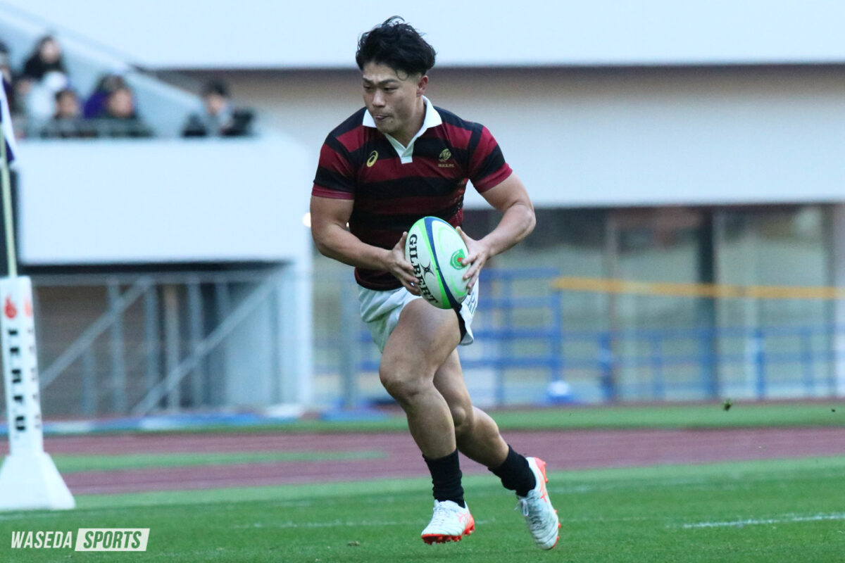 にじり寄った。試合を振り返って見れば、明大のトライは3つだったのに対し、早大は1。しかしながら、CTB野中健吾主将(スポ4=東海大大阪仰星)の正確なペナルティーキックで常に明大を射程圏内にとどめた。しかし、最後の一押しが足りなかった。捉え続けた背中を追い抜くための決定的なトライを生むことができなかったのだ。前半は先制に成功するも、すぐに明大に得点を許す。10ー10という緊張感のあるゲーム展開で後半を迎えた。優勝を決する40分、早大はPGで明大に詰め寄りながら逆転の隙を虎視眈々と狙う。しかし、ノーサイドまでに逆転のトライを挙げることはできず、悔しい敗北となった。2敗を喫し、3位で終えた関東大学対抗戦(対抗戦)。昨年とは異なる、負けて臨む全国大学選手権(大学選手権)の景色はどうチーム野中に影響を与えるのだろうか。