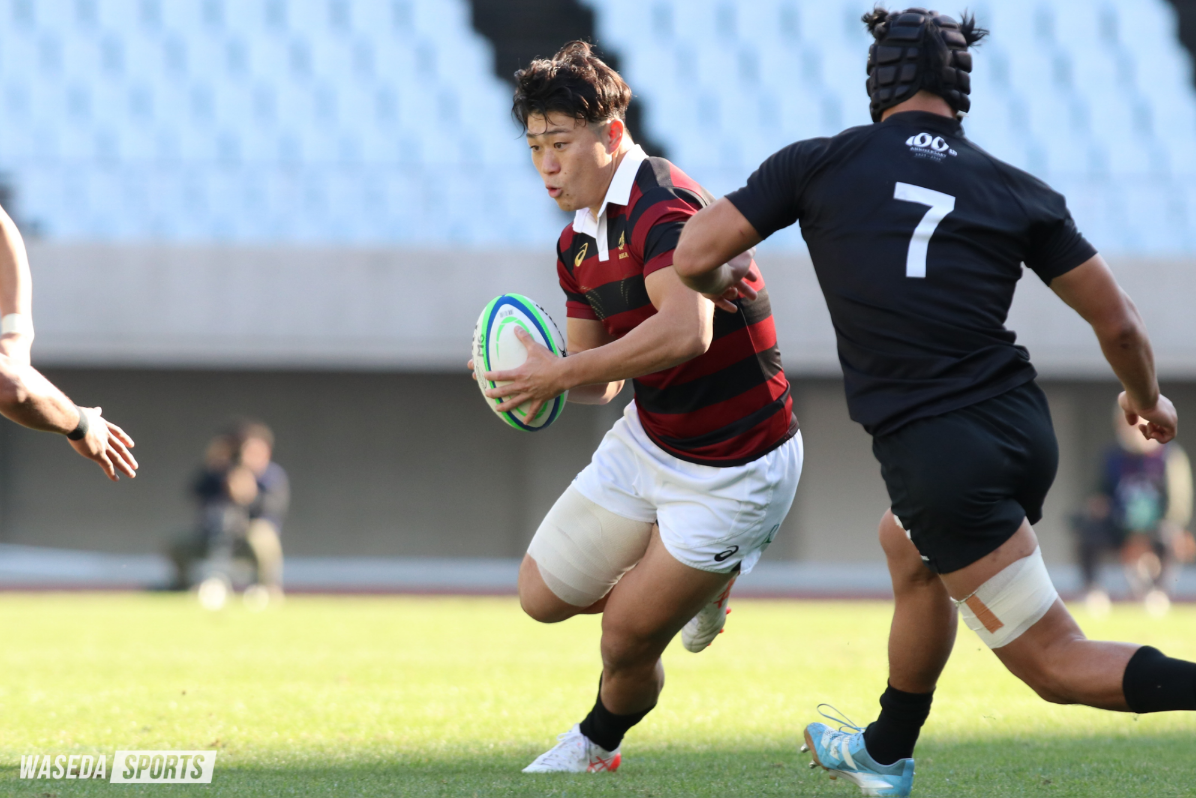 ディフェンスは早稲田としてはかなり頑張っていたなという印象で、ペナルティーも少なく、横と繋がりながら守備ができたことで今回のようなスコアで勝つことができたのかなと思います。