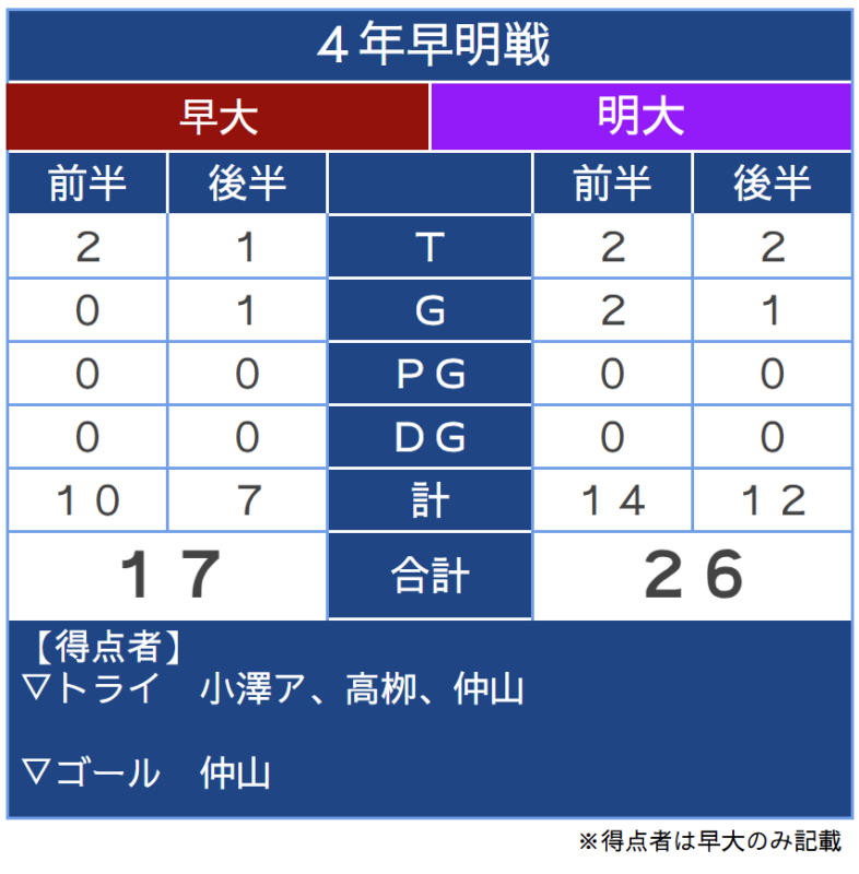 4年早明戦 12月26日 対明大 早大・上井草グラウンド