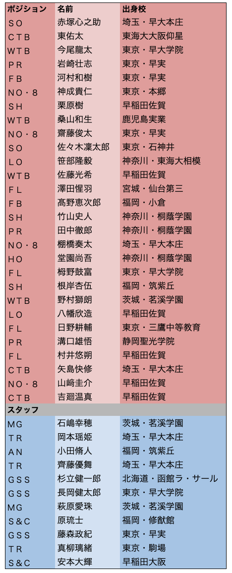 セットプレーの精度、チャンスでの決定力、そしてディフェンスの連携。あらゆる面で2年生のレベルの高さが顕著に表れた一戦だった。早大ラグビー部における1年間の成長度の大きさを証明するとともに、新入生にとっては今後の基準となる大きな刺激になったことだろう。一方で、新入生たちも随所で得点機を演出し、ペナルティーを誘うなど、格上相手に個々のポテンシャルの高さを示した。彼らの成長は熾烈な部内競争を生み出し、相乗効果となり、チーム清水をより高みへと引き上げてくれるはずだ。2年連続で、あと一歩のところで日本一を逃してきた早大。この1年で、その「あと一歩」を埋めるためのピースを集めていかなければならない。もちろん、そのピースの中には、新たな仲間として加わった新入生たちも含まれている。 悲願の王者奪還へ。チーム清水の挑戦は、まだ始まったばかりだ。