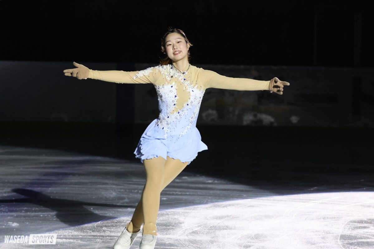 西俣仁衣奈(文構2=福岡雙葉)が披露したのは、前回のWOIと同様『フリネの踊り』。長年のバレエ経験に加え、昨年から始めたというシンクロナイズドスケーティングの経験を活かして指先まで美しく、軽やかでしなやかな演技を披露した。