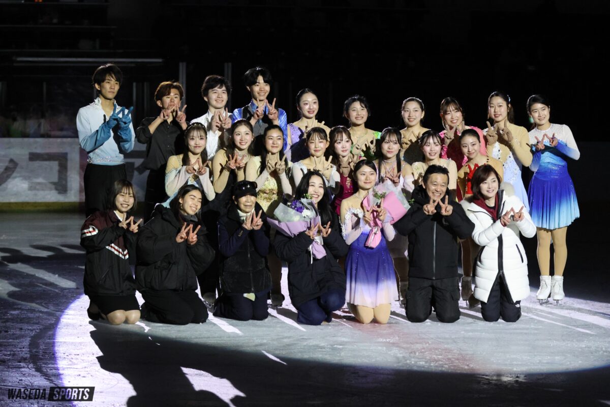 ショー本編終了後には、4年生2人へ、後輩から花束が贈られた。小林彩乃(政経4)は、マネージャーとしてフィギュアスケートに関われたことへの感謝を、今年度主将として部を引っ張ってきた妻鹿は、主将としての苦悩と家族や部員への感謝を語った。最後には坂﨑が来年度の主将を務めること、その他幹部部員が発表され、クロージングとなる。多様なグループナンバーと、一人一人の想いが込められた個人演技。早大フィギュア部門の魅力が存分に発揮されたアイスショーは、選手と観客のたくさんの笑顔に包まれていた。新体制の早大フィギュア部門への期待も一層高まる。