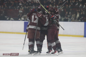 年が明け早速、早稲田スポーツが大きな盛り上がりを見せている。アイスホッケーも例外ではない。今年初めての日曜日、1月4日に早慶定期戦が行われた。会場の観客席はほぼ埋まり、応援部が先陣を切って両チームに向け大きな声援を送る中、試合は行われた。第1ピリオドでFW高見澤英翔(スポ2=埼玉栄)がゴールを決め先制点を奪い、続く第2ピリオドでもFW笹沼葵(教3=東京・早実)が2点目となるシュートを決めて、優位に立った。その後慶大に1点を返されるものの何とか粘る。2-1で勝利し、昨年の負けを返したかたちとなった。