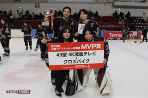 インカレ(日本学生氷上競技選手権大会)は例年通りと言ってしまったらあれですが、ベスト8というところで終わってしまいました。ただこの早慶戦に入るときにしっかり勝って、楽しい青春を締めくくりたいなという思いがあったので、その点本当にいい形で終われたのかなと思います。また、四年間関わってくださった先輩や同期、後輩、そして早稲田の関係者の方々、本当にたくさんの方に感謝しかないですね。
