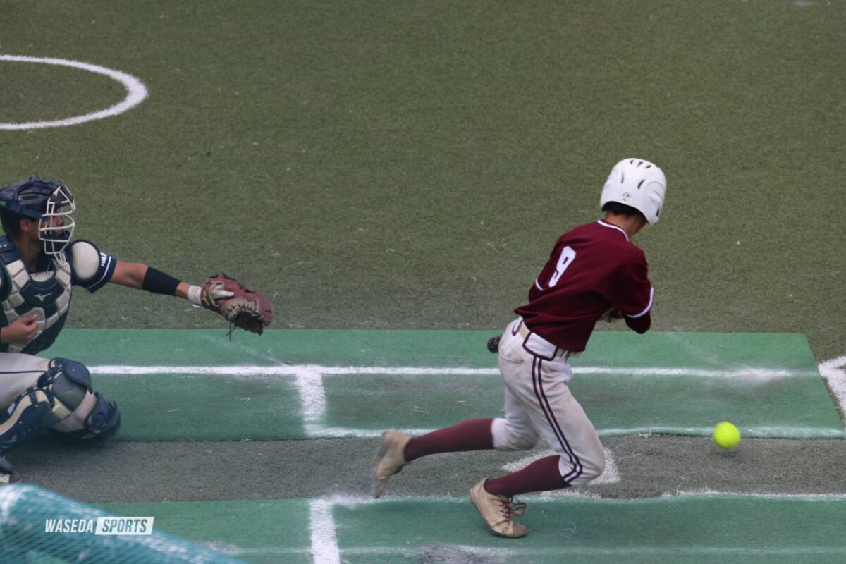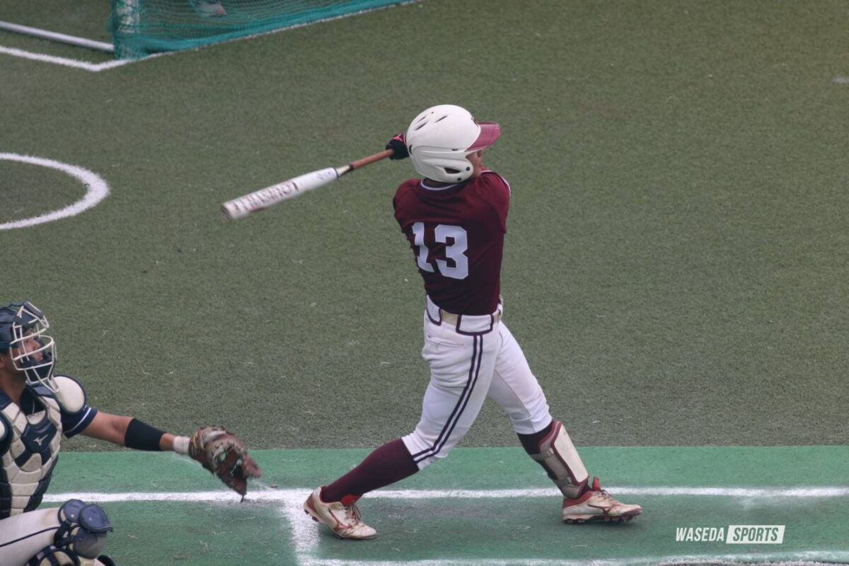 何とか反撃したい早大だが、相手投手の速球に苦戦。3回までに8個の三振を奪われ、出塁は2回に鈴木寛汰朗副将(文構3=東京都市大付)が選んだ四球のみと、ほぼ完ぺきに封じ込められる。