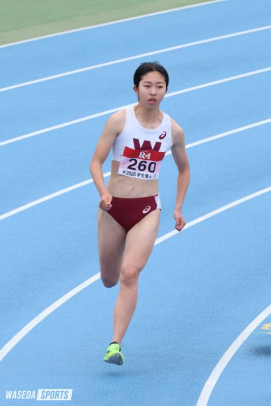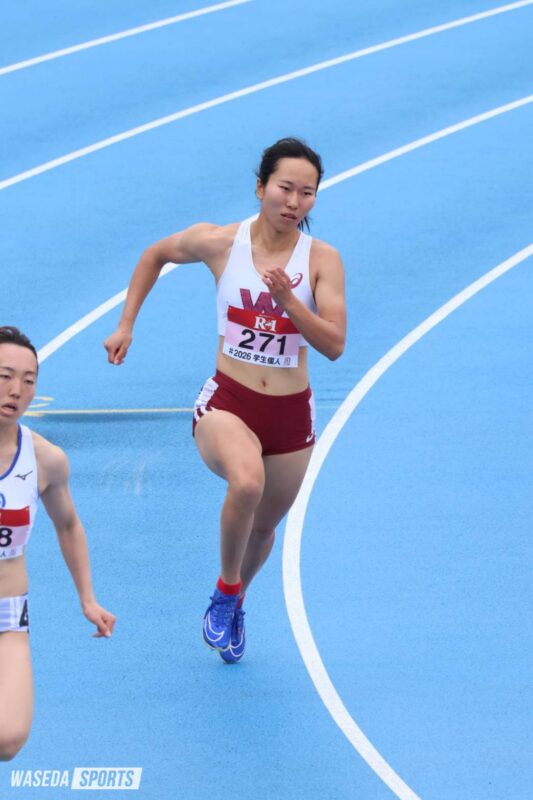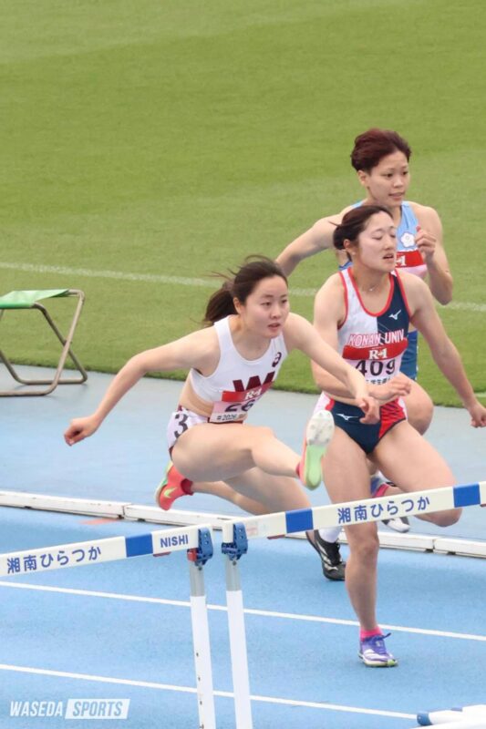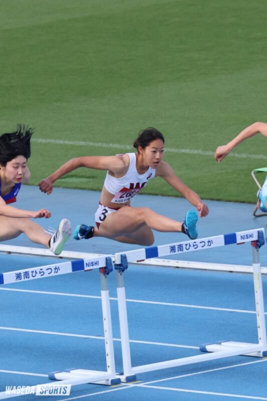 女子100メートルハードルには予選3組に谷中天架(スポ2=大分雄城台)、5組に野村美月(スポ3=栃木・石橋)、6組に松田晏奈(スポ2=長崎日大)と林美希(スポ3=愛知・中京大中京)、7組にイベル聖羅(商3=京都橘)の計5人が出場した。松田は準決勝で早大歴代3位となる記録をたたき出し、進出した決勝の舞台では5位入賞。谷中もB決勝に進出するなど実力を見せた。