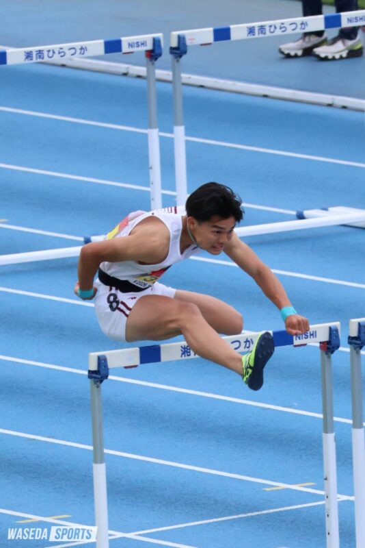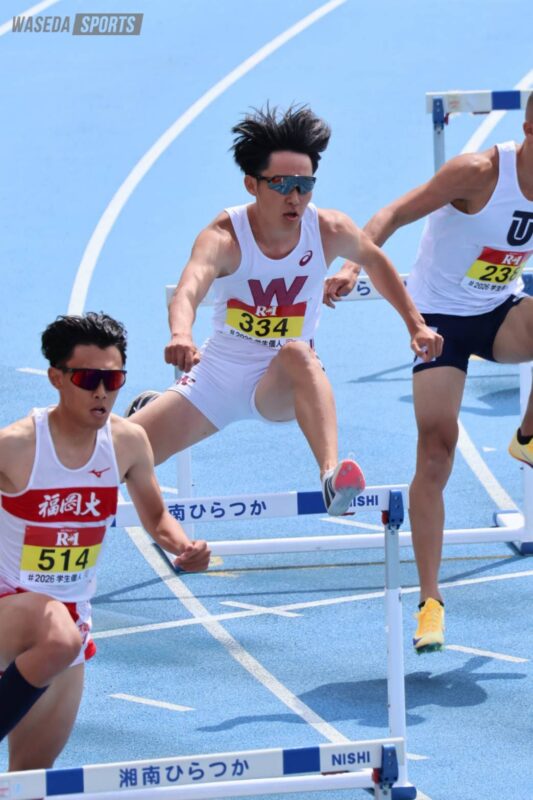 男子400メートルハードル(ヨンパー)には、早大から平田和(スポ4=鹿児島・松陽)、酒井大輔(スポ1=四学香川西)、齋藤悠仁(スポ1=千葉・八千代)の3人が出場した。平田が予選、準決勝で持ち前の安定感を発揮し、決勝に進出。しかし、決勝では「苦しいレース」となってしまい、6着で今大会を終えた。